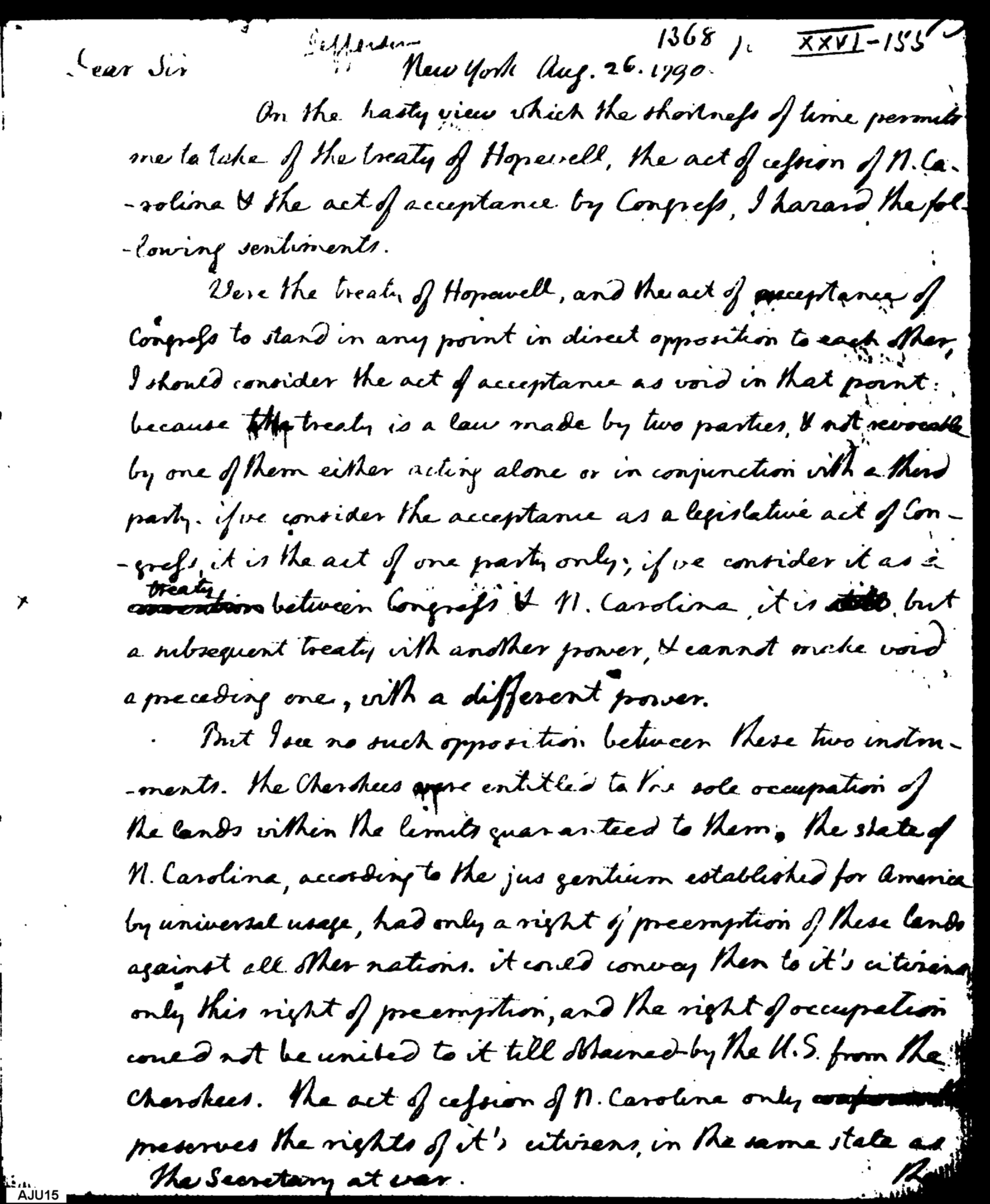 - Document: Jefferson offers his opinion to Knox regarding the Treaty of Hopewell
