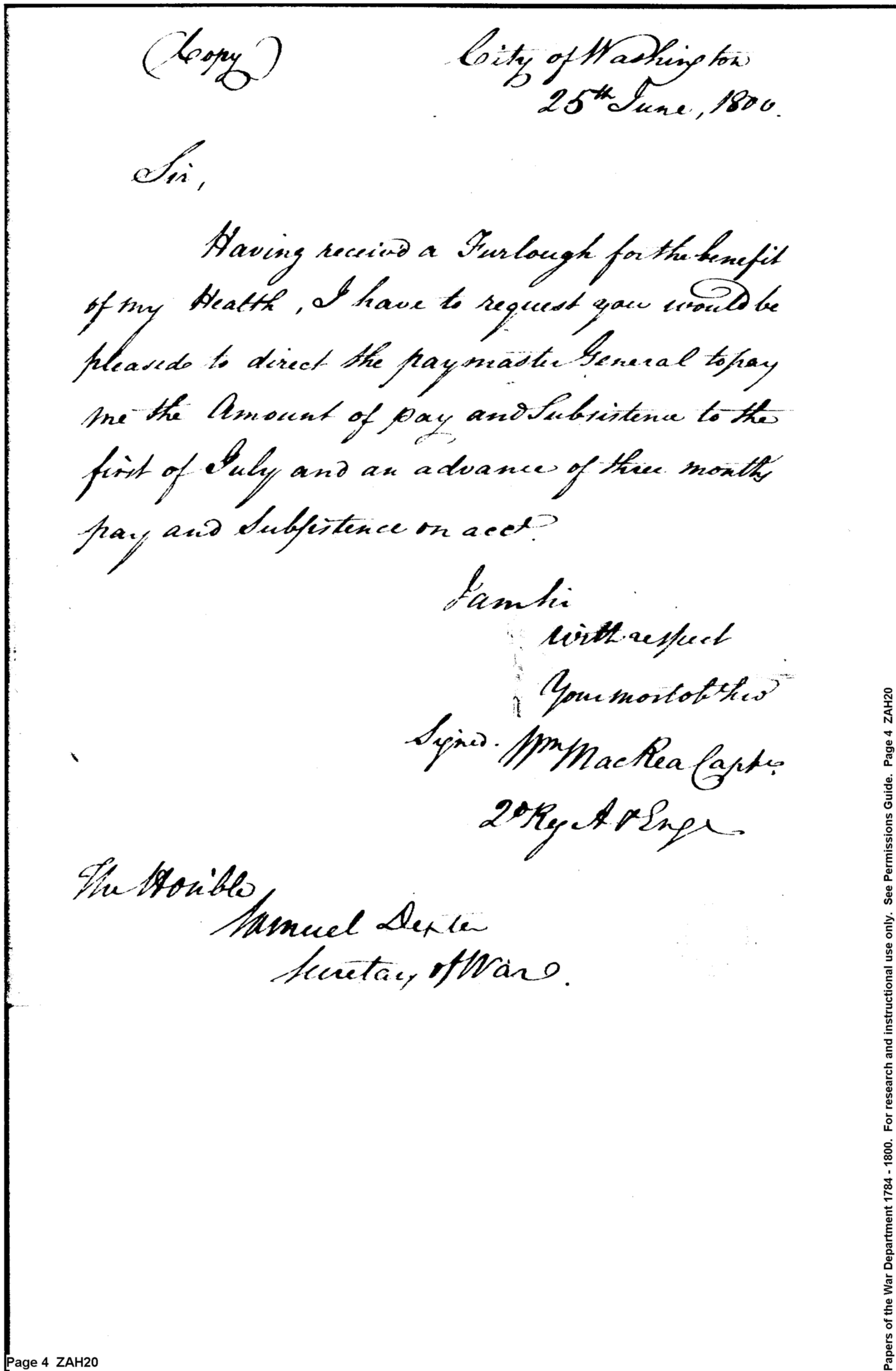 - Document: Advance of Pay and Subsistence Captain William MacRea