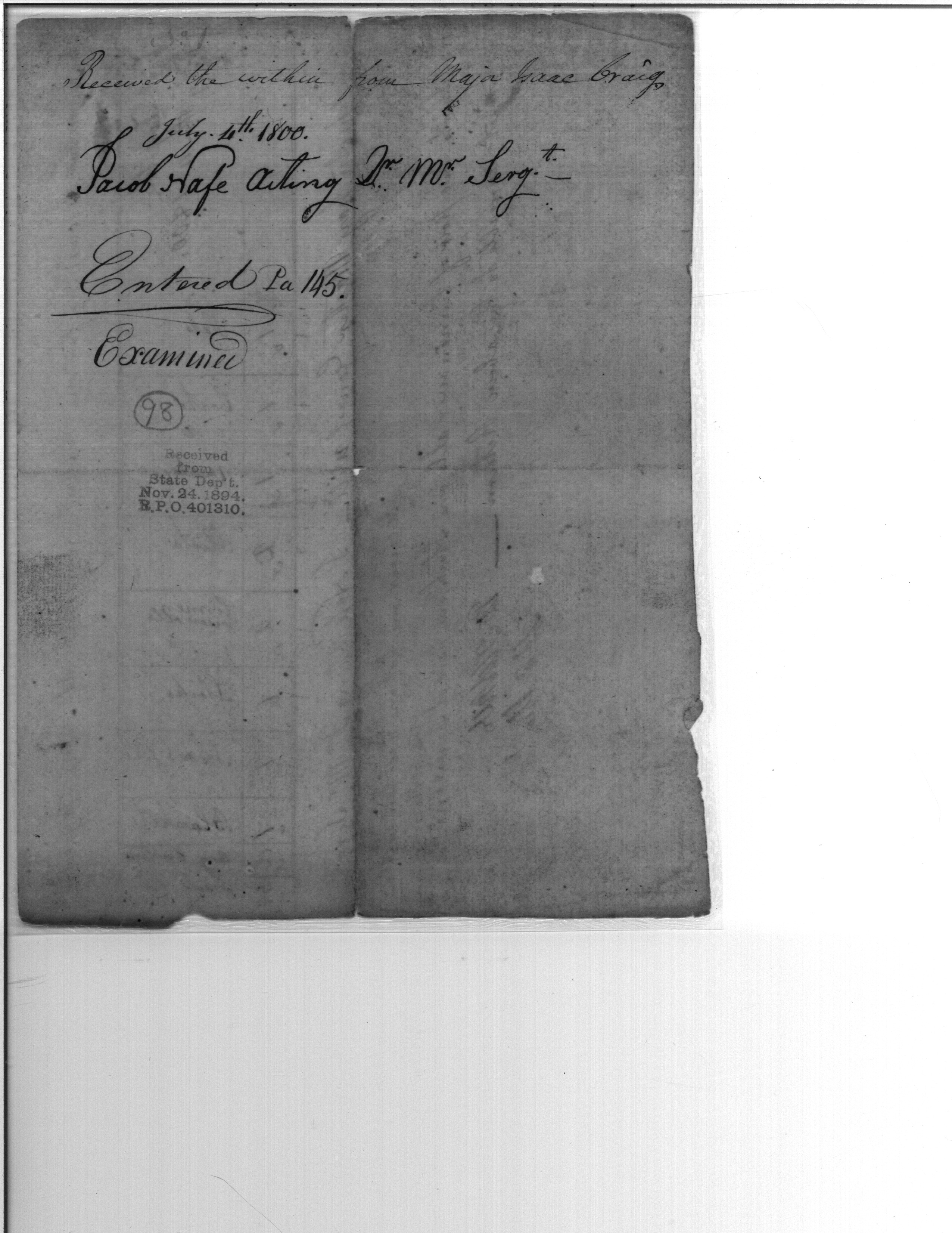 - In source: Collection: Post Revolutionary War Papers, 1784-1815. (RG94)