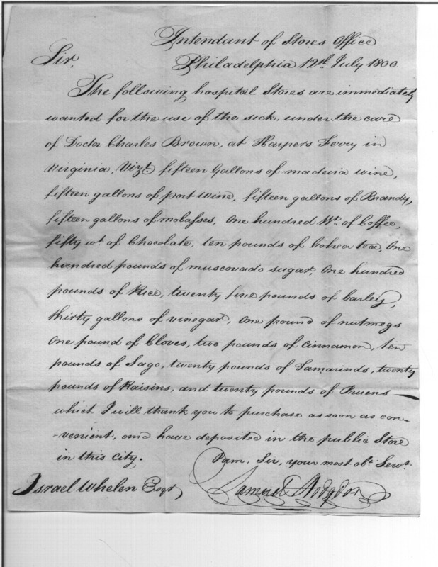 - Document: Request for Purchase of Medicine for Sick at Harper's Ferry