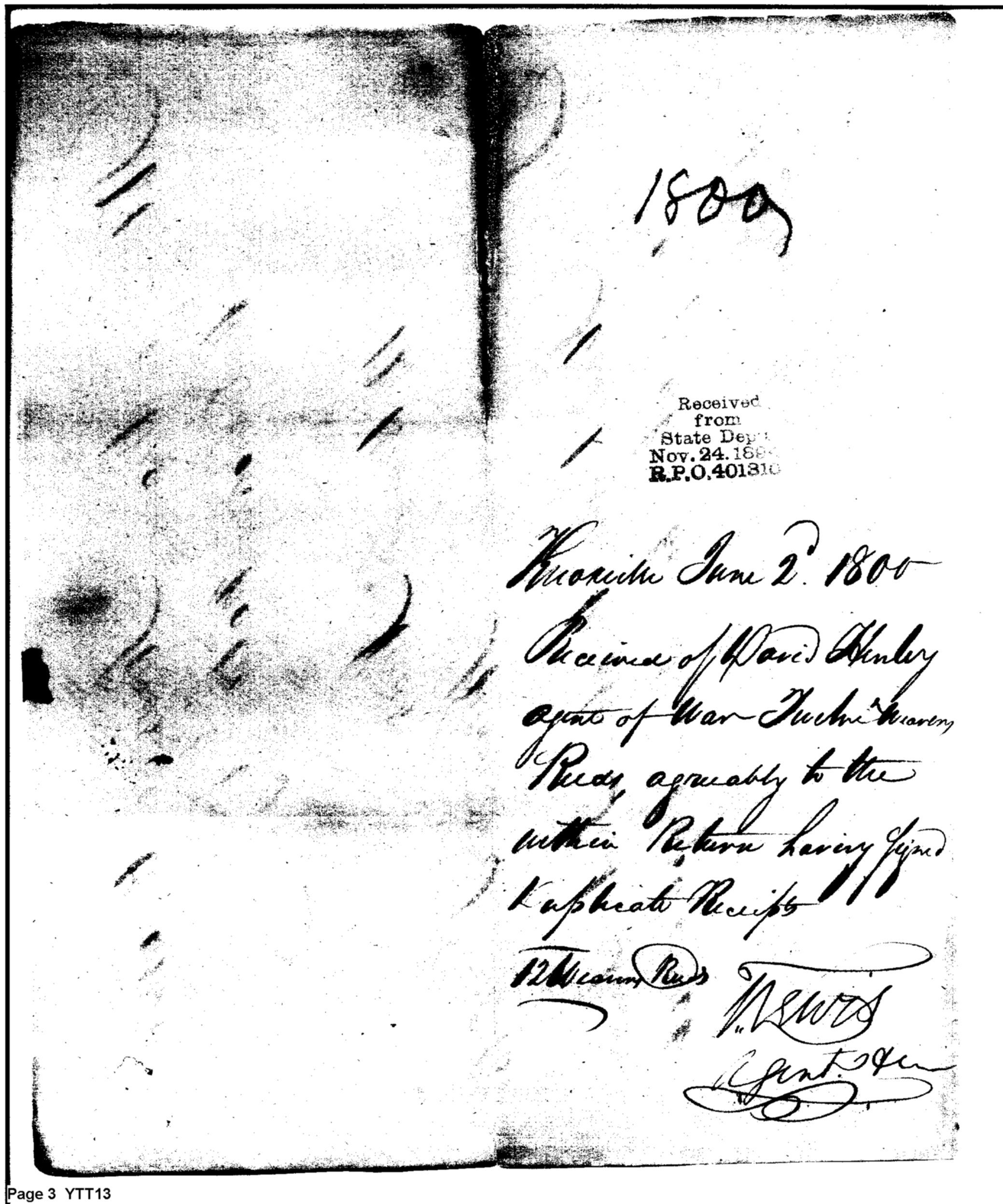 Document ViewerDuplicate Returns for June 1800 to Agent for Department of War in Tennessee