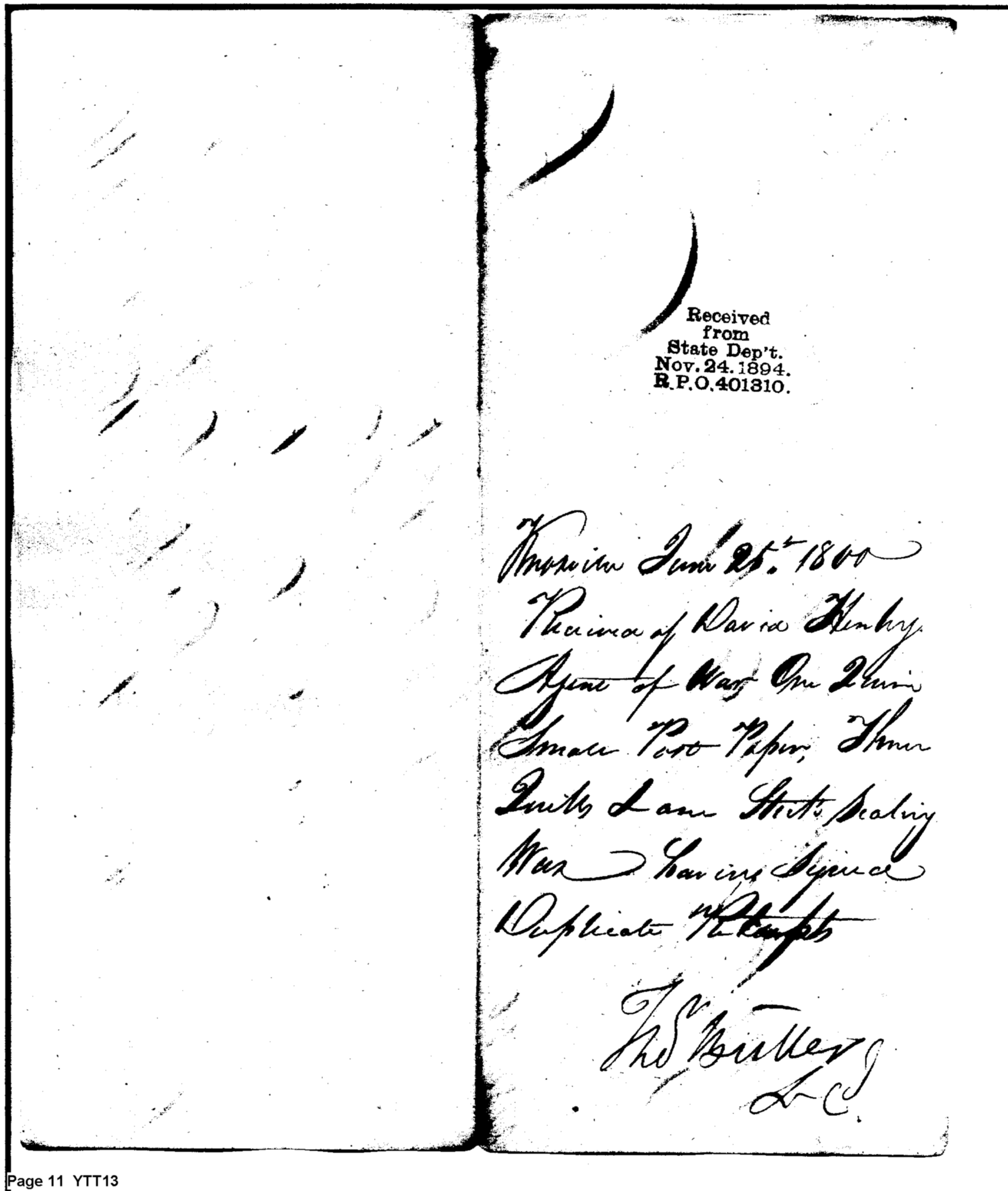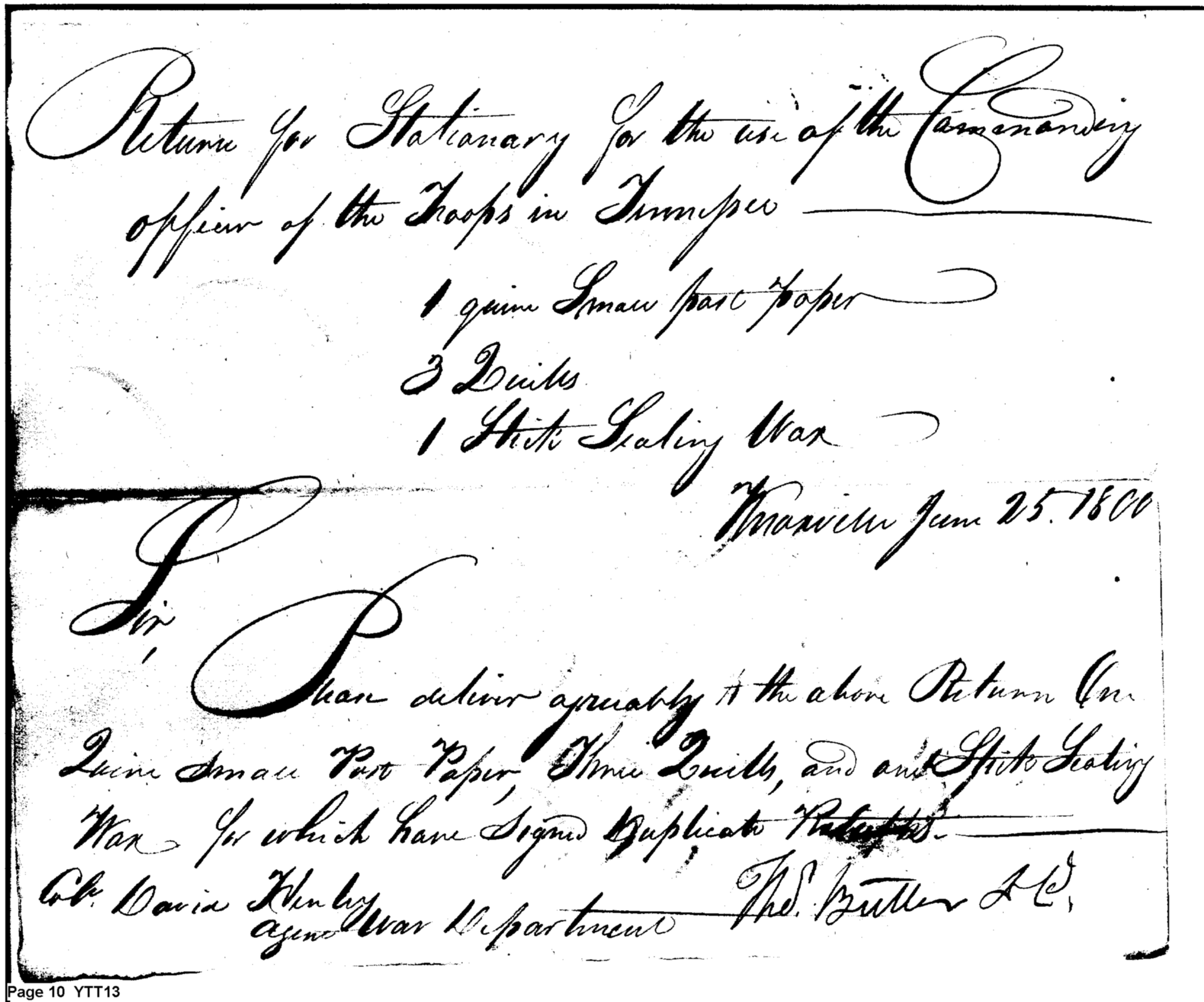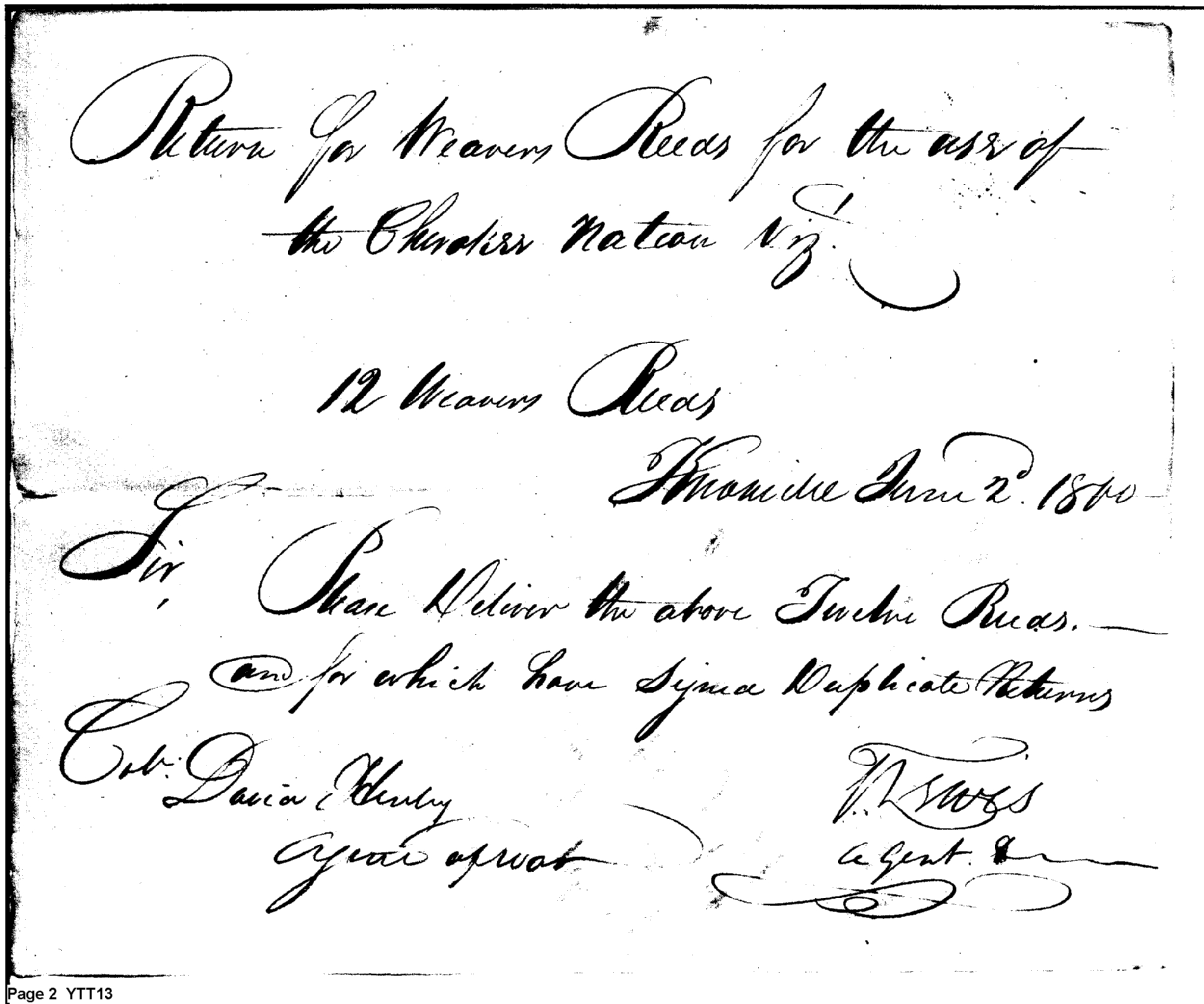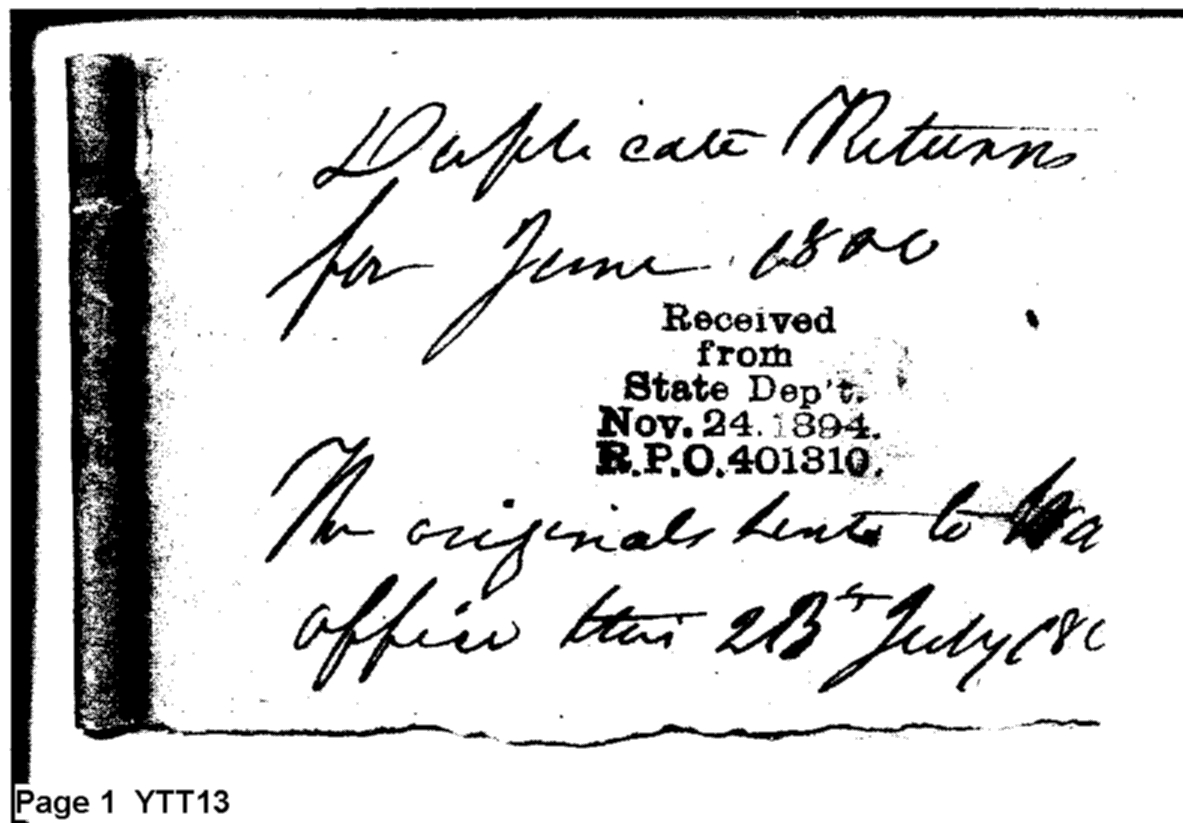 - Document: Duplicate Returns for June 1800 to Agent for Department of War in Tennessee