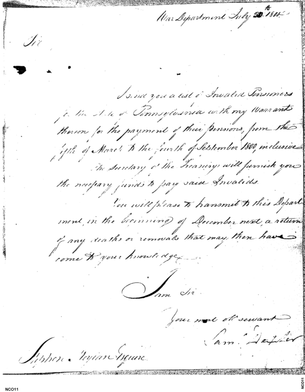 - Document: Enclosed List of Invalid Pensioners for Pennsylvania