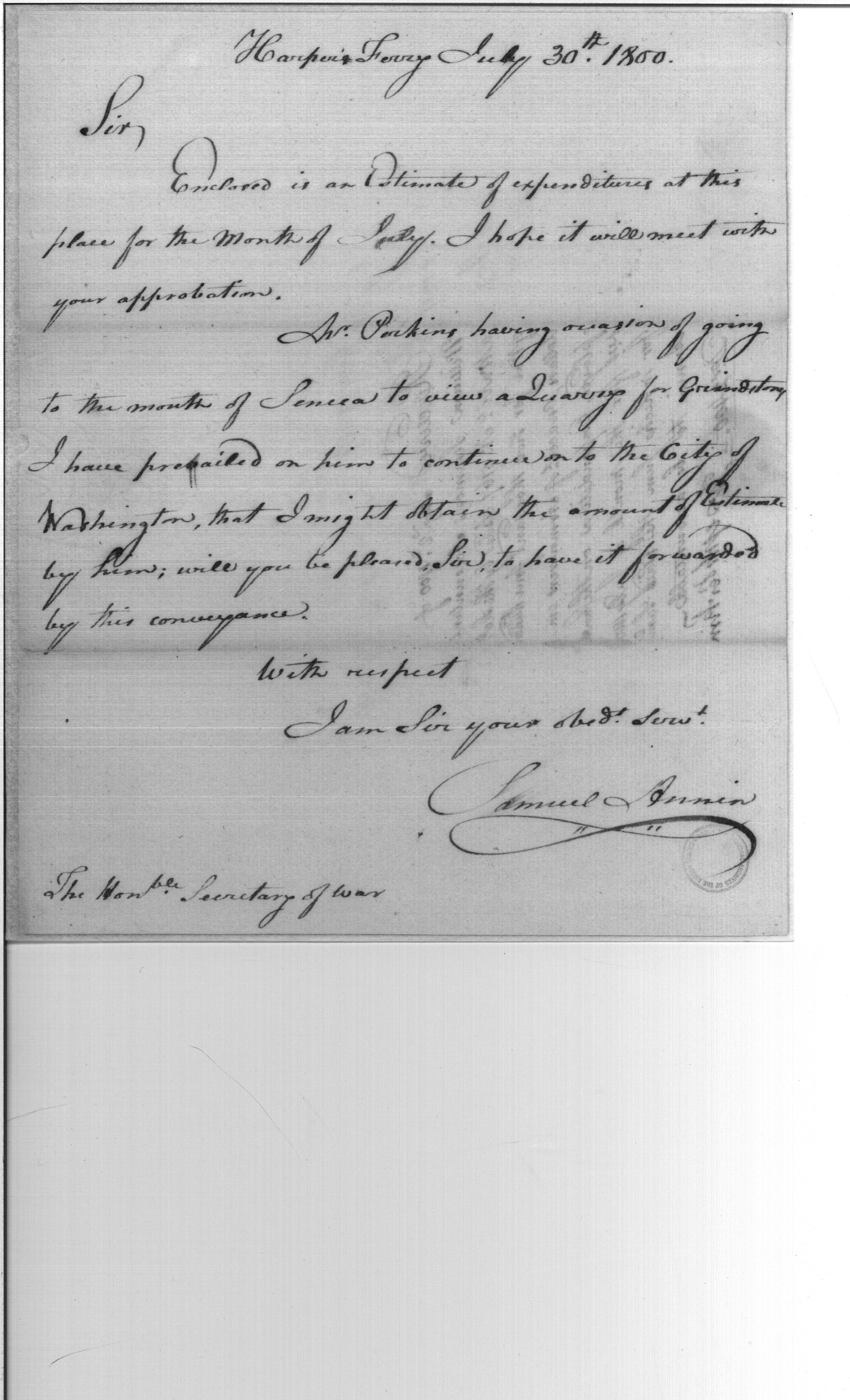 - Document: Account of armorers employed and expenditures on the canal, Harpers Ferry