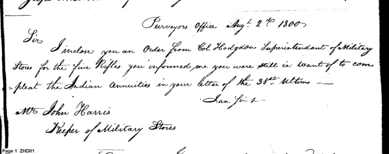 - In source: Collection: Letterbook of the Purveyor of Public Supplies, May2, 1800-Jul 24, 1802. 1 vol. (RG45)