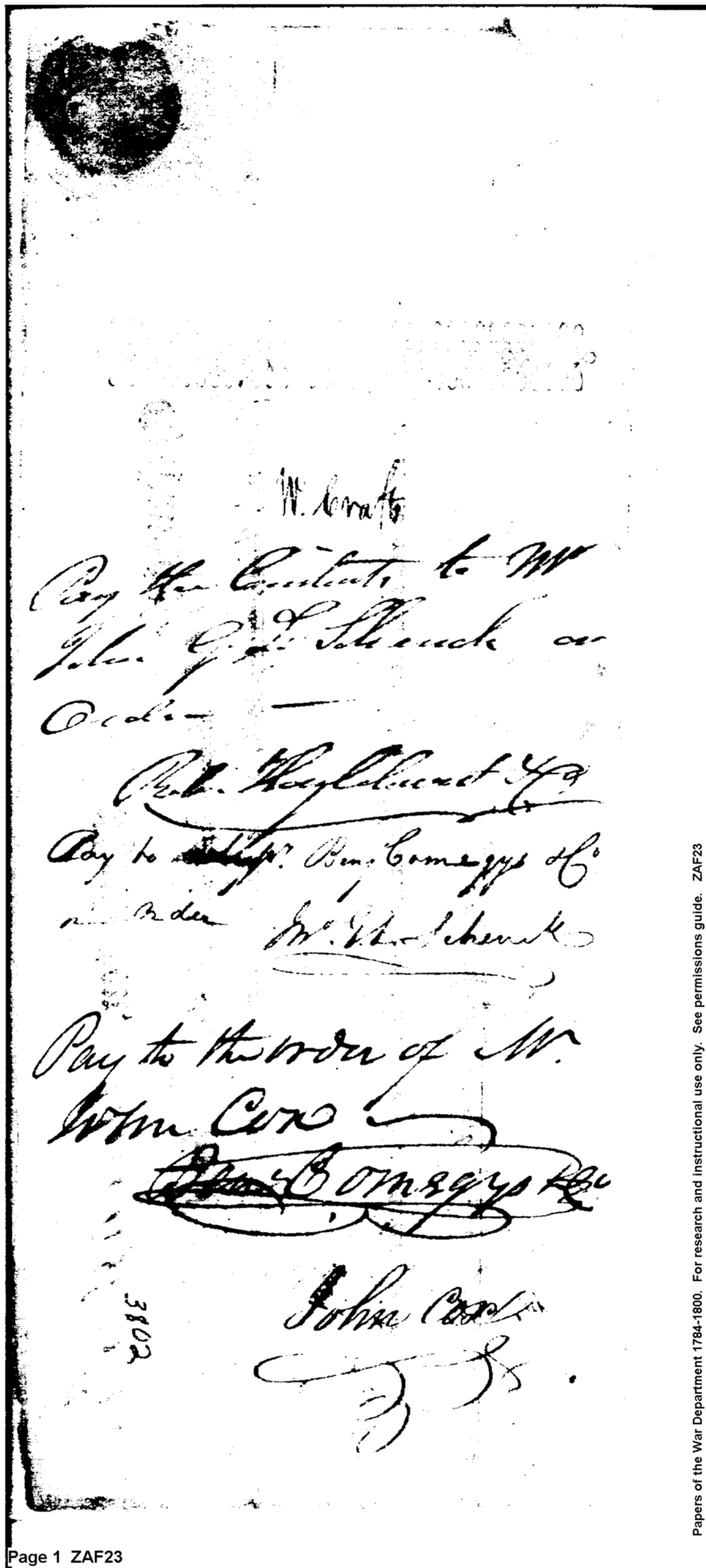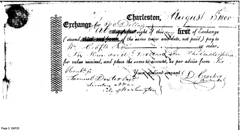 Document ViewerExchange from Dodridge Crocker contractor, pay to William Crafts on account of subsistence to the army
