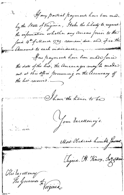 - Document: Payment of Arrears by State of Virginia to Invalids, Widows, and Orphans