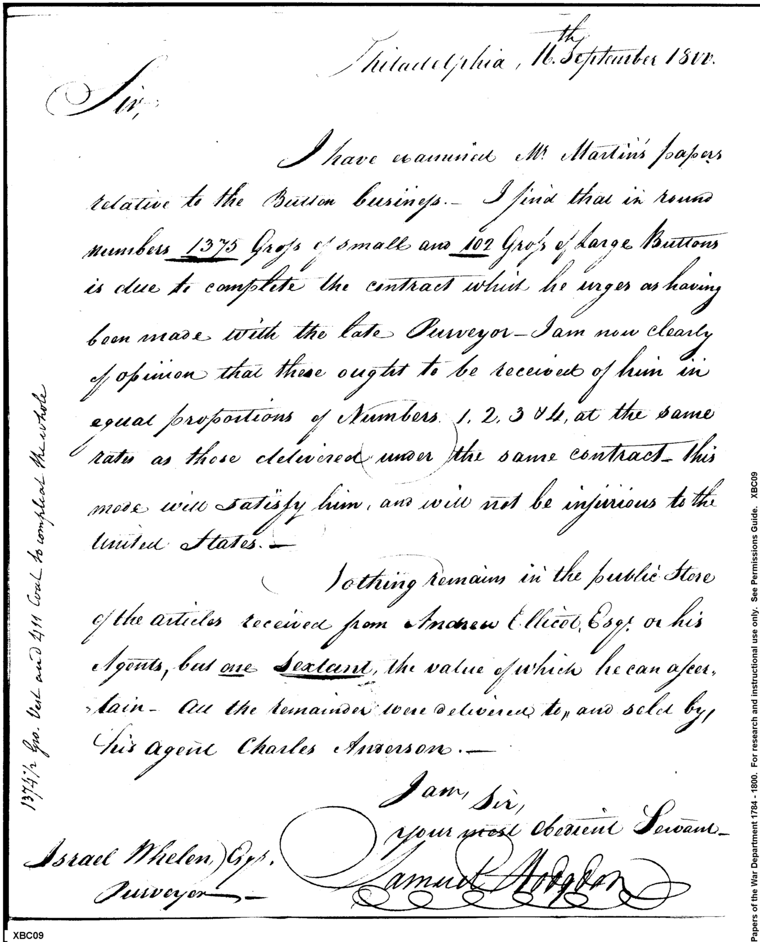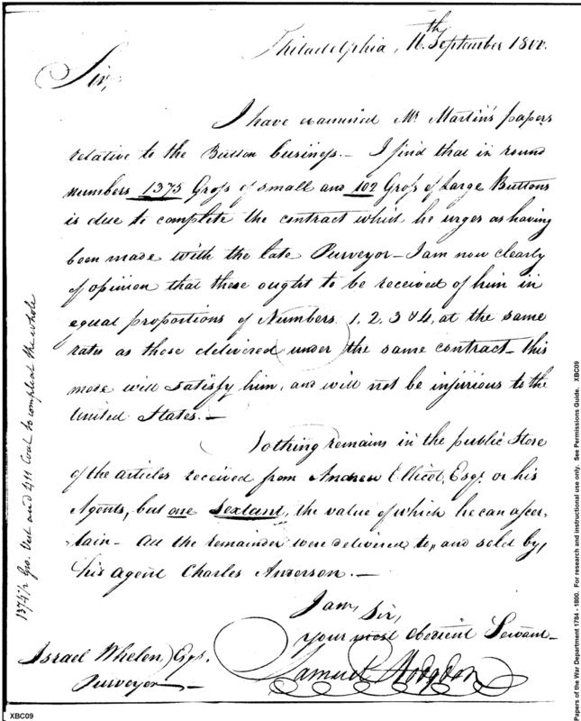- Document: Regarding the Supposed Button Contract, and Andrew Ellicot's Articles in the Public Stores