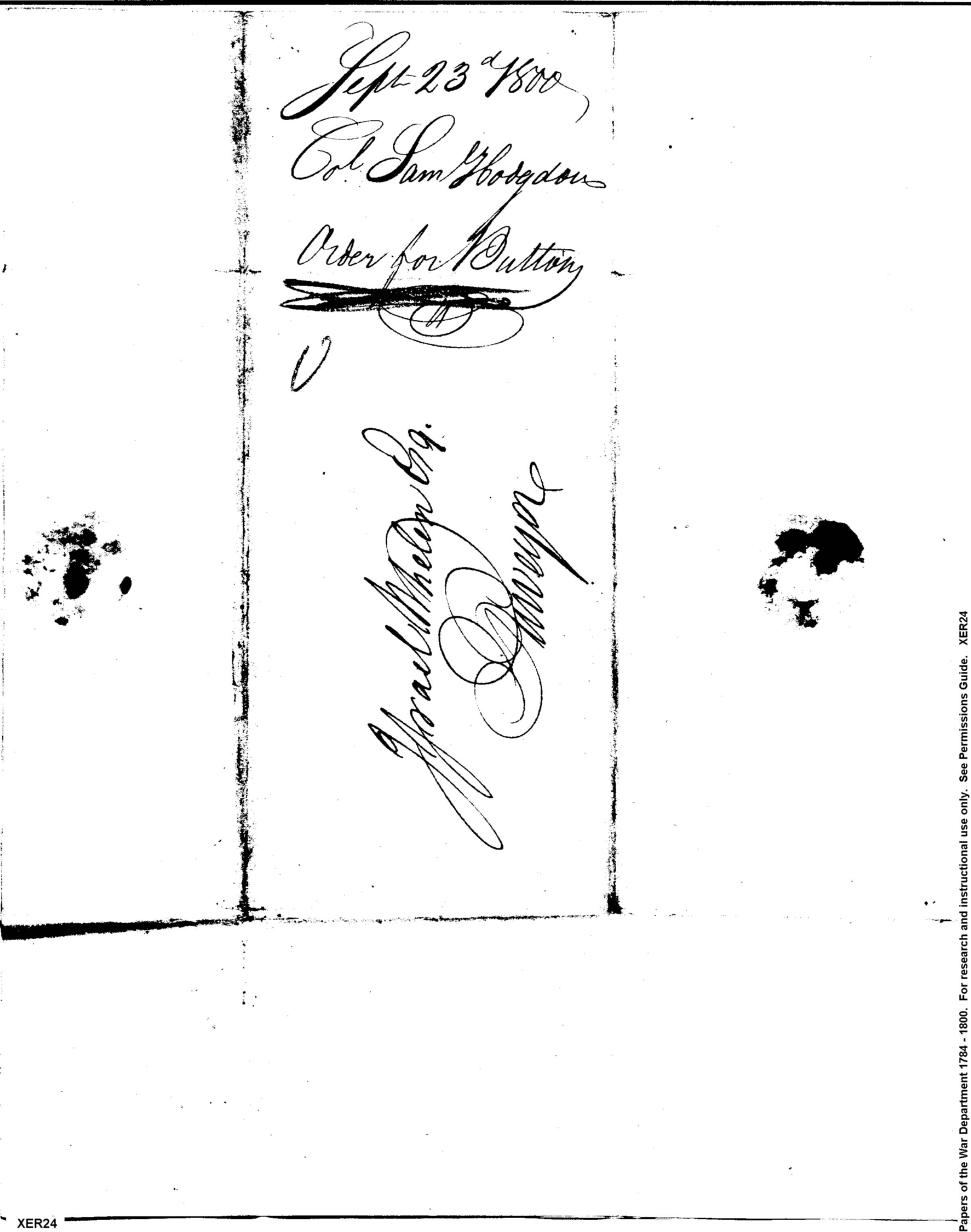 - Document: Order for Buttons for Corps of Artillerists and Engineers