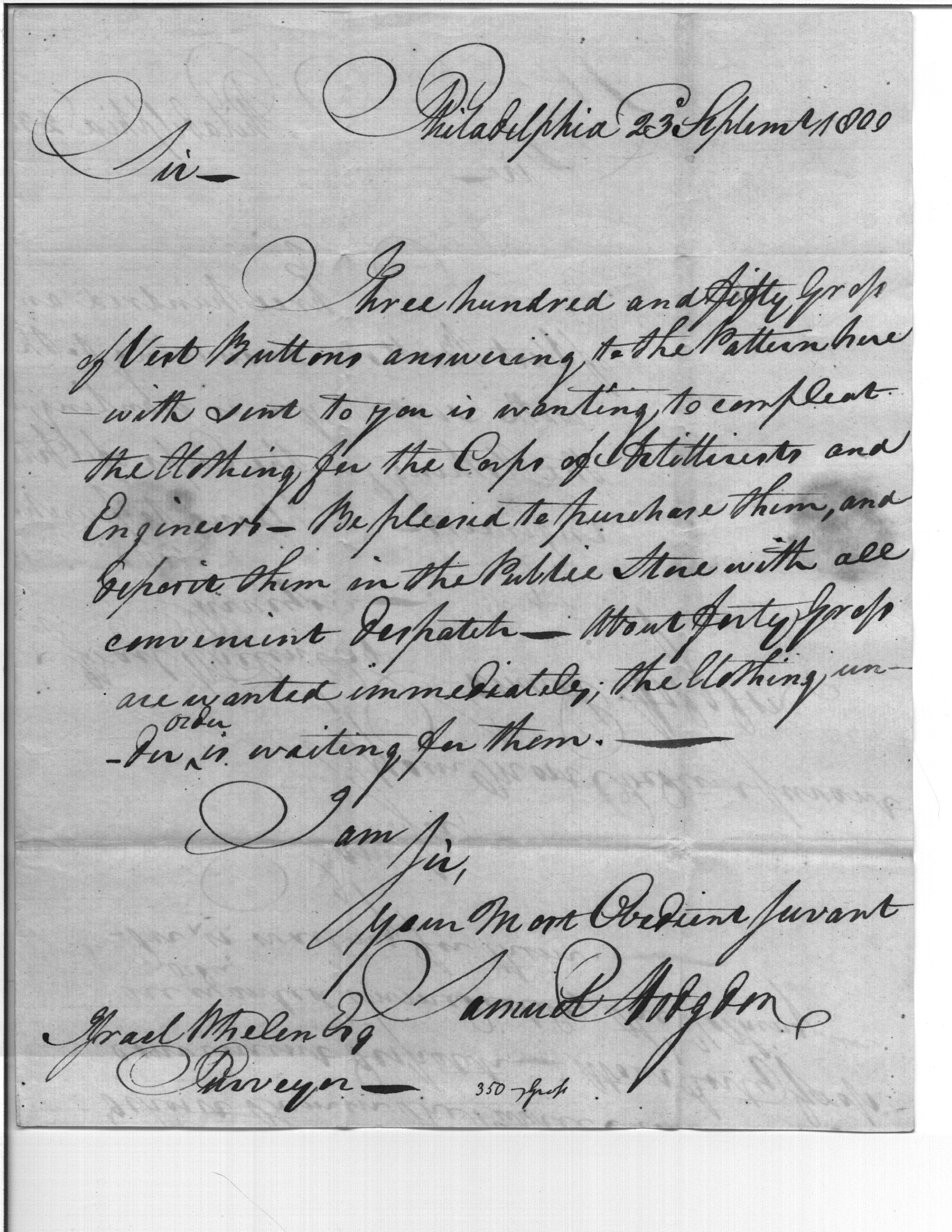 - Document: Order for Buttons for Corps of Artillerists and Engineers