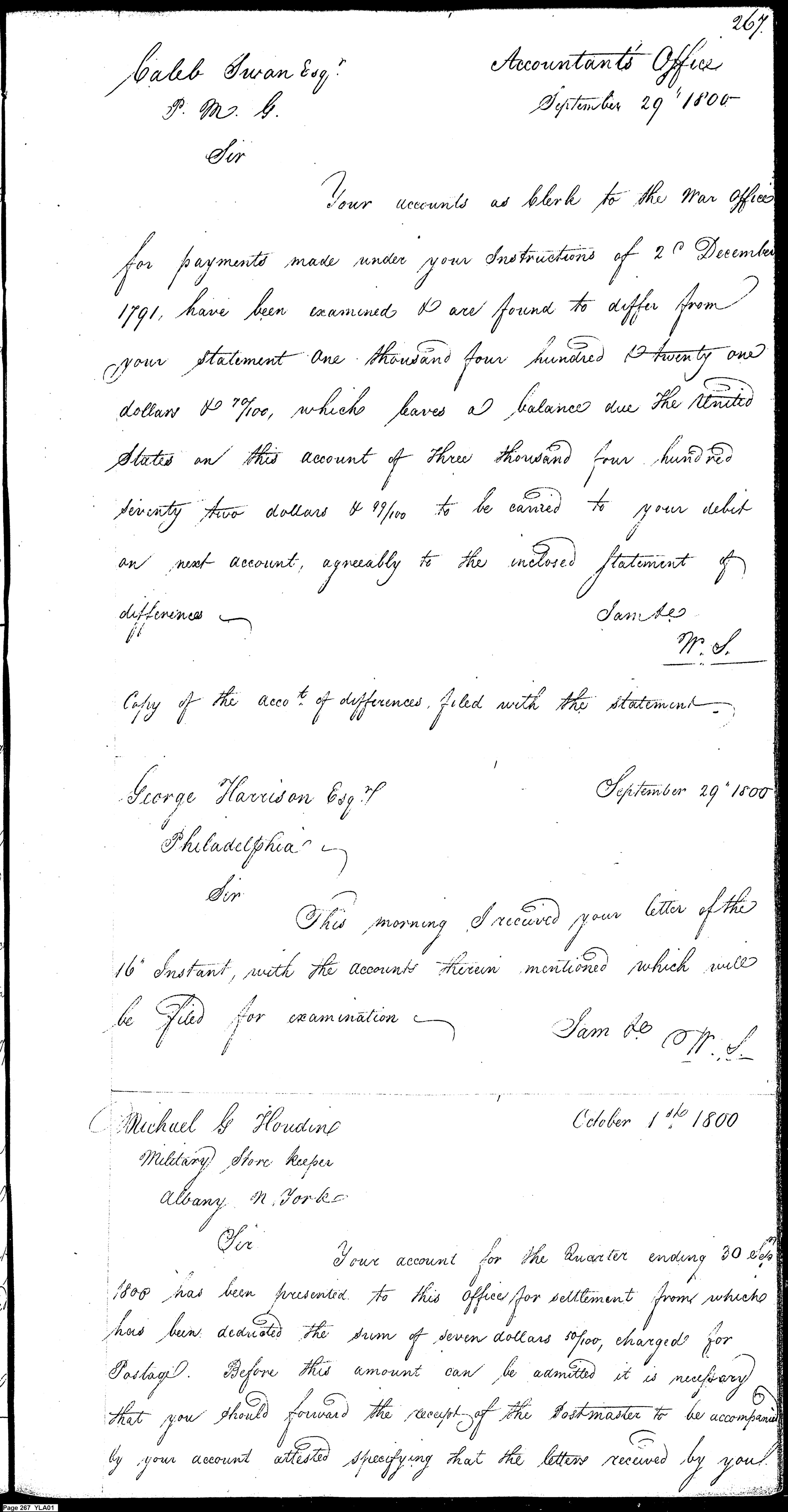 - Document: Simmons Writes Swan About a Discrepancy in Accounts