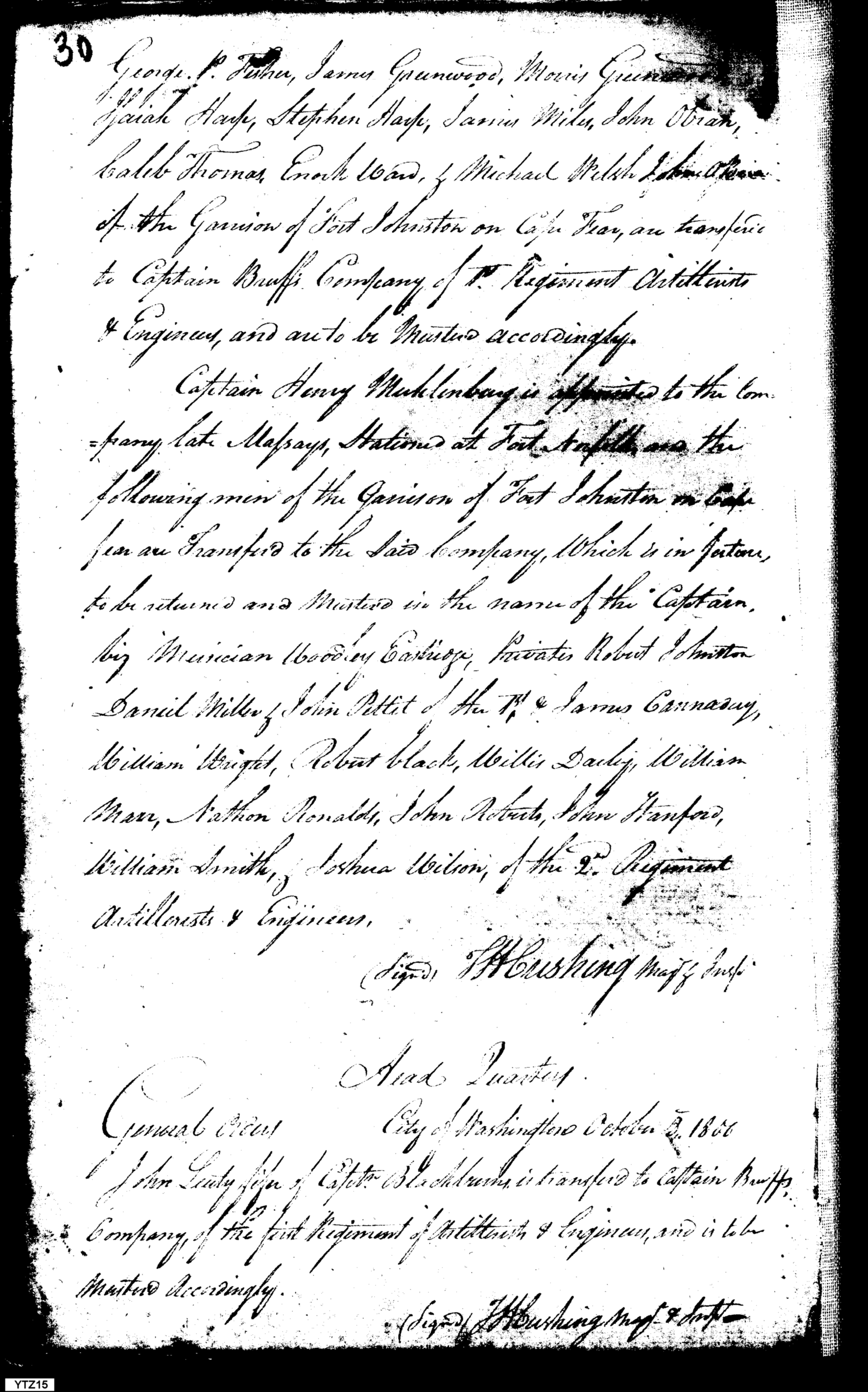 - In source: Collection: Orderly Book for the Garrison at Fort Johnston, N.C., 1795-1811. (RG98)
