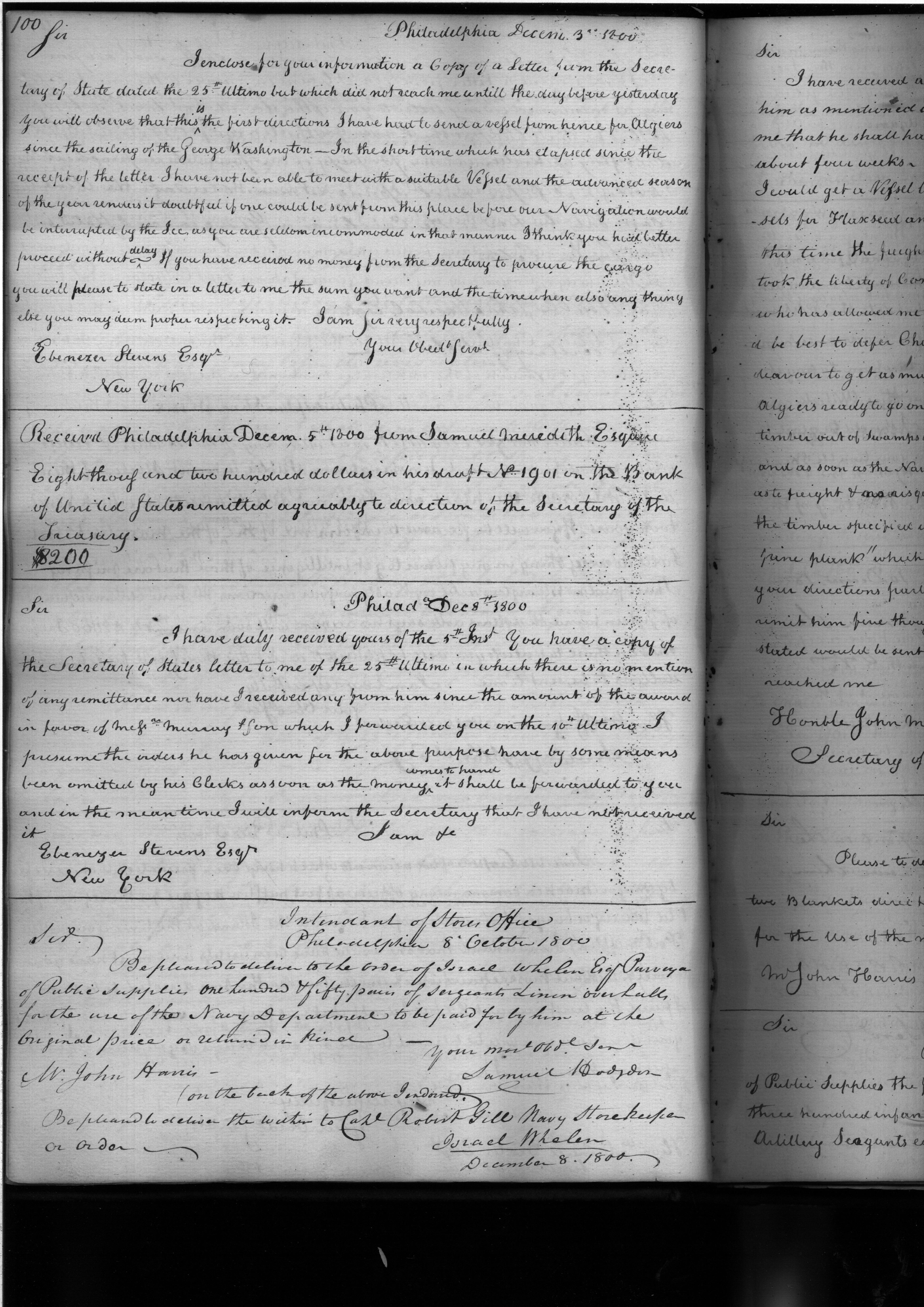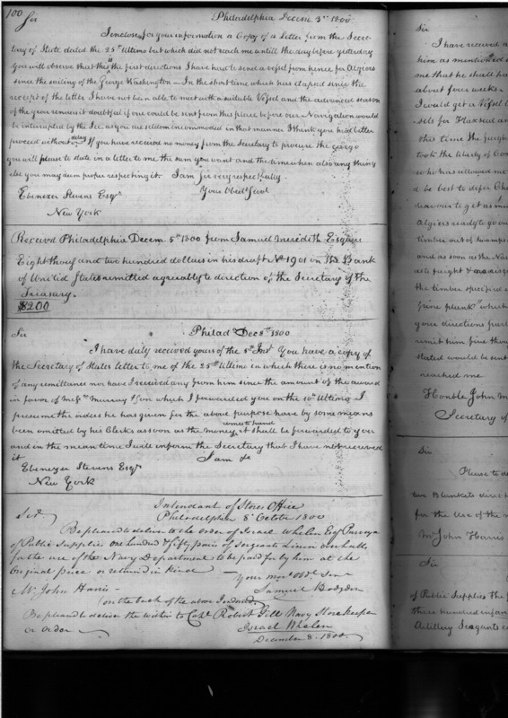 - In source: Collection: Letterbook of the Purveyor of Public Supplies, May2, 1800-Jul 24, 1802. 1 vol. (RG45)