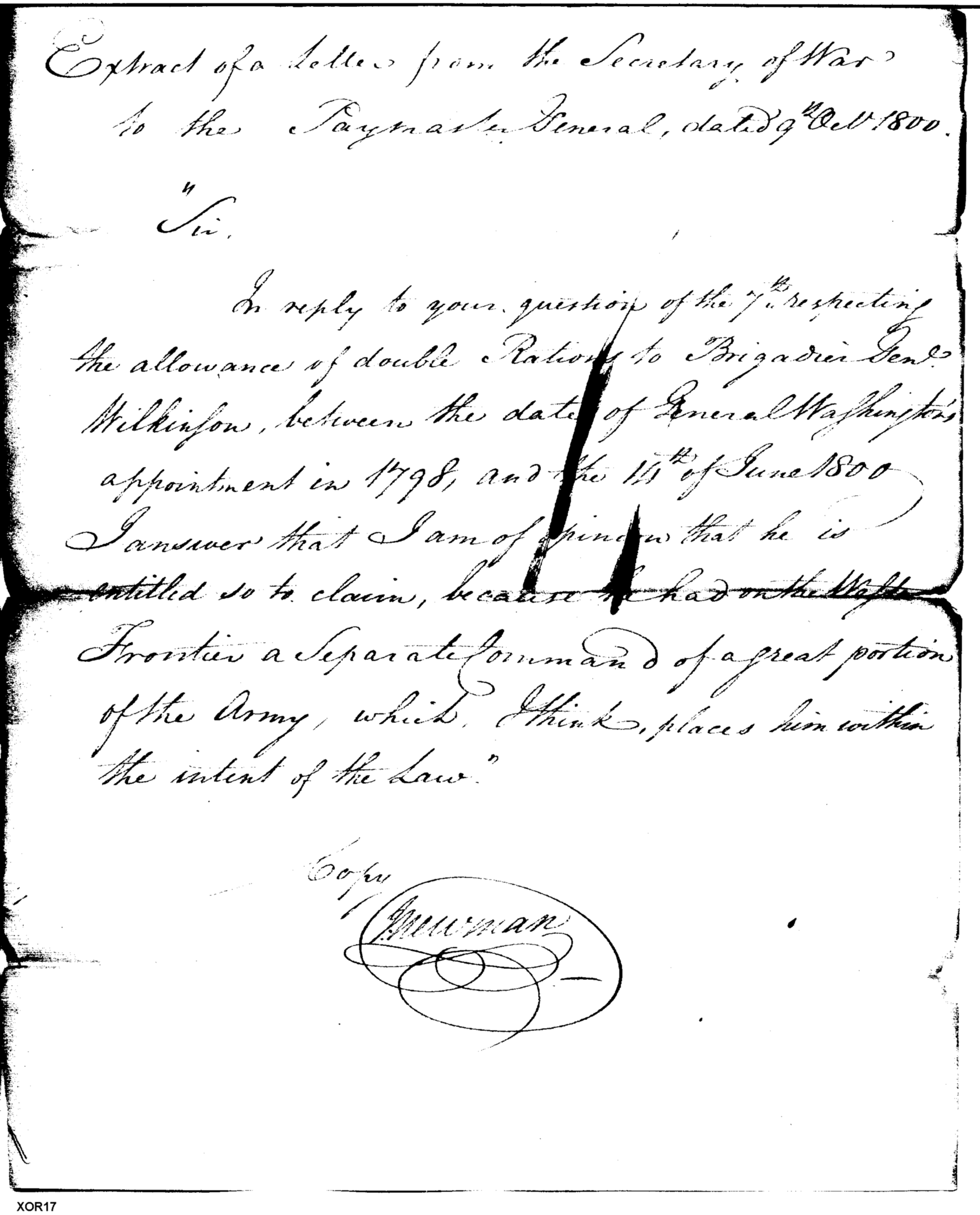 - Document: Double Rations for General Wilkinson