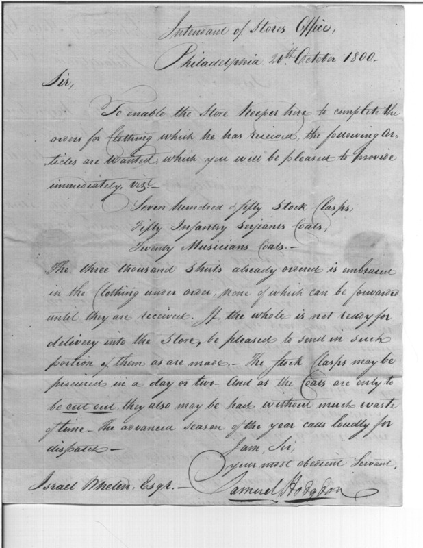 - In source: Collection: Correspondence, Reports, Returns, Bills, Accounts Current' Statements, Receipts, Vouchers and Contracts of Philadelphia Supply Agencies (Coxe and Irvine Papers), 1794-1842. (RG92)