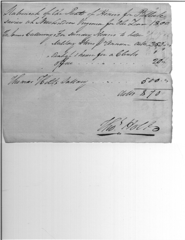 - Document: Statement of the Rents of Houses for Public Service at New London Virginia for the Year 1801.