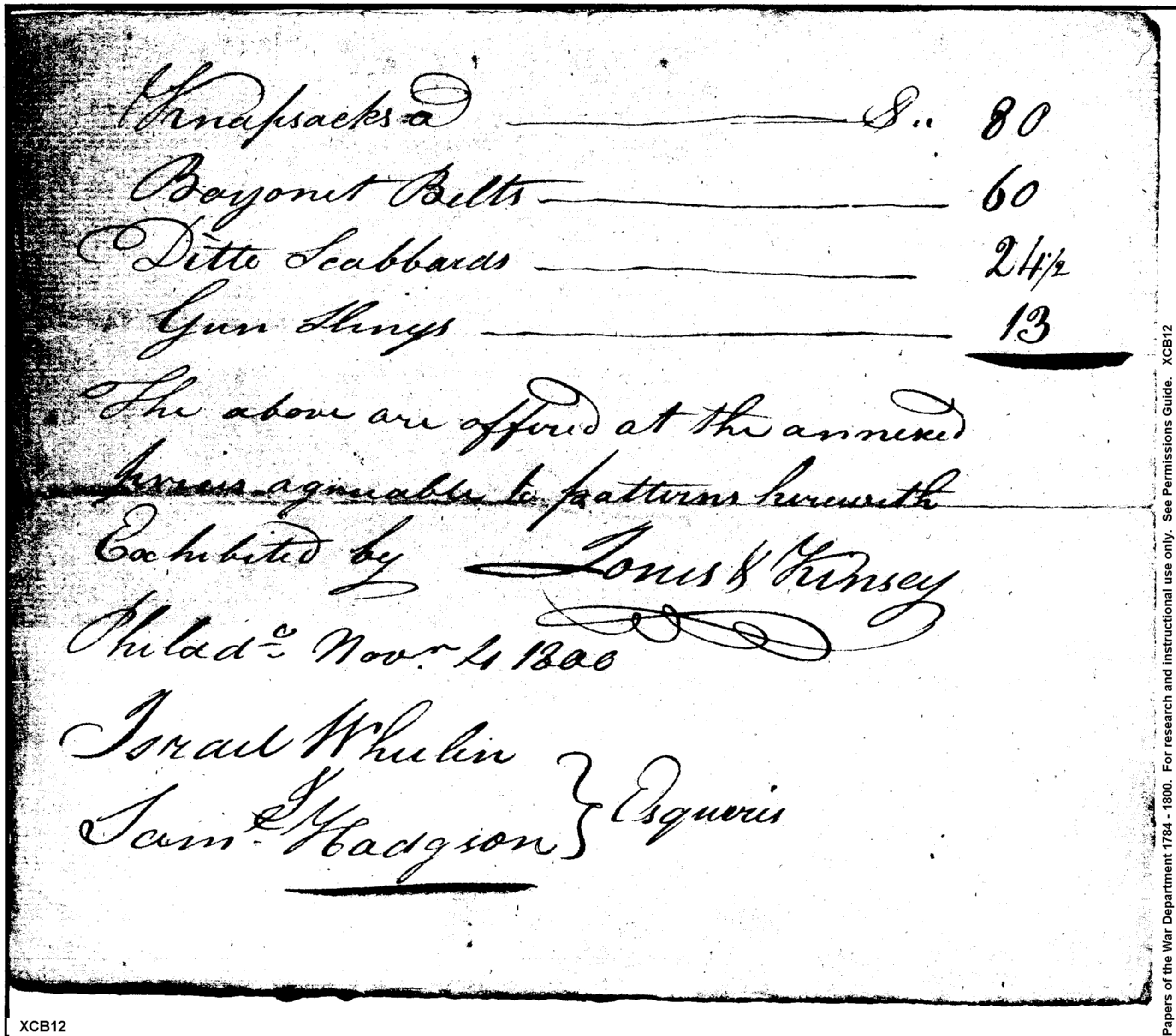- Document: Proposal for furnishing knapsacks, bayonet belts, bayonet scabbards, gunslings