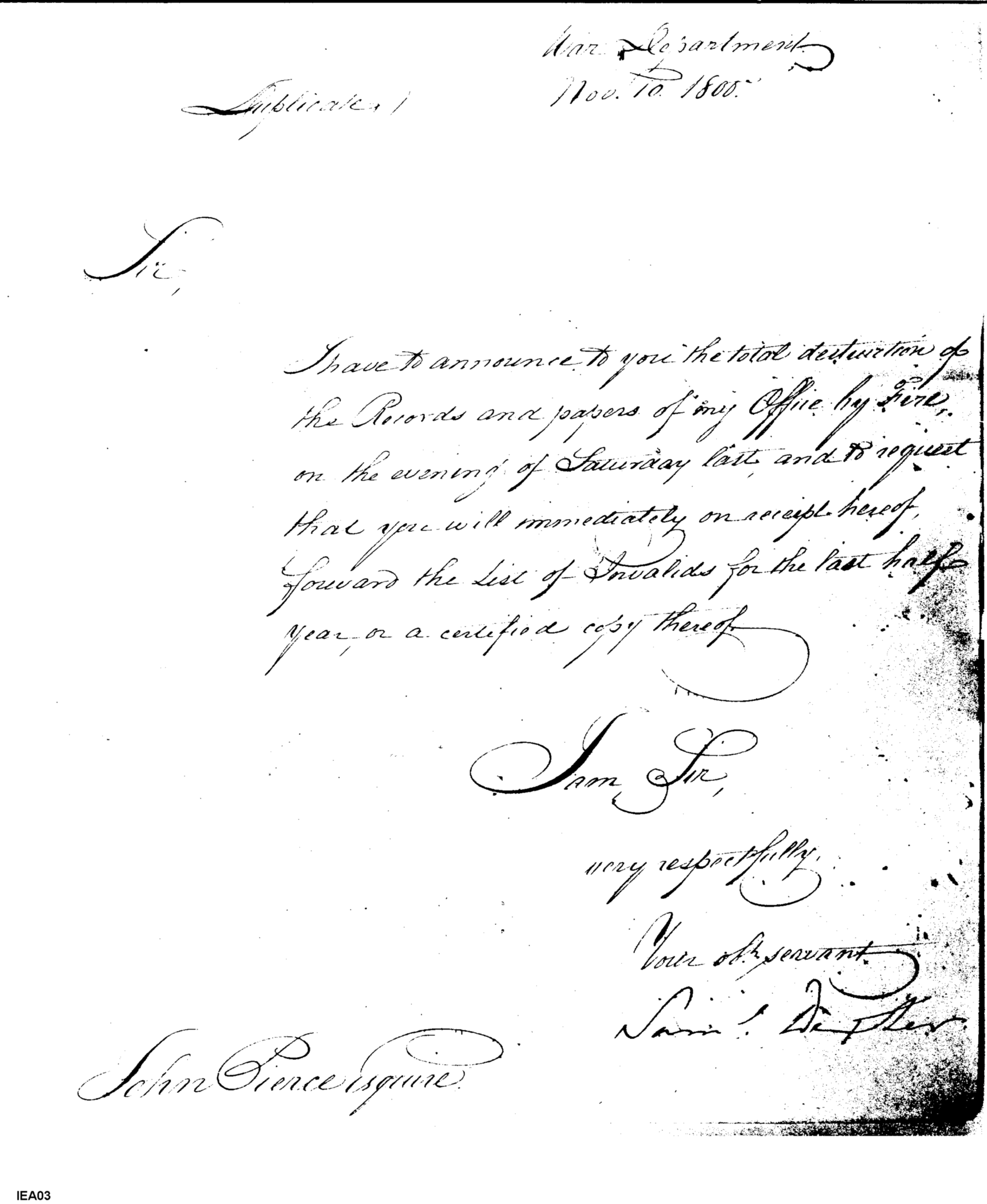 - Document: Records Lost Due to Fire; Request List of Invalids