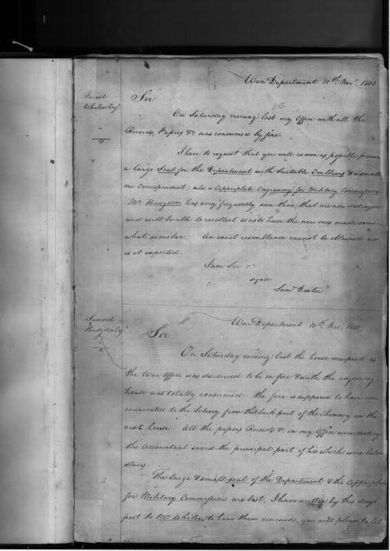 - In source: Collection: Letters Sent by the Secretary of War Relating to Procurement of Supplies (Order Books), Nov 12, 1800-Dec 31, 1889. (RG107) (M127)