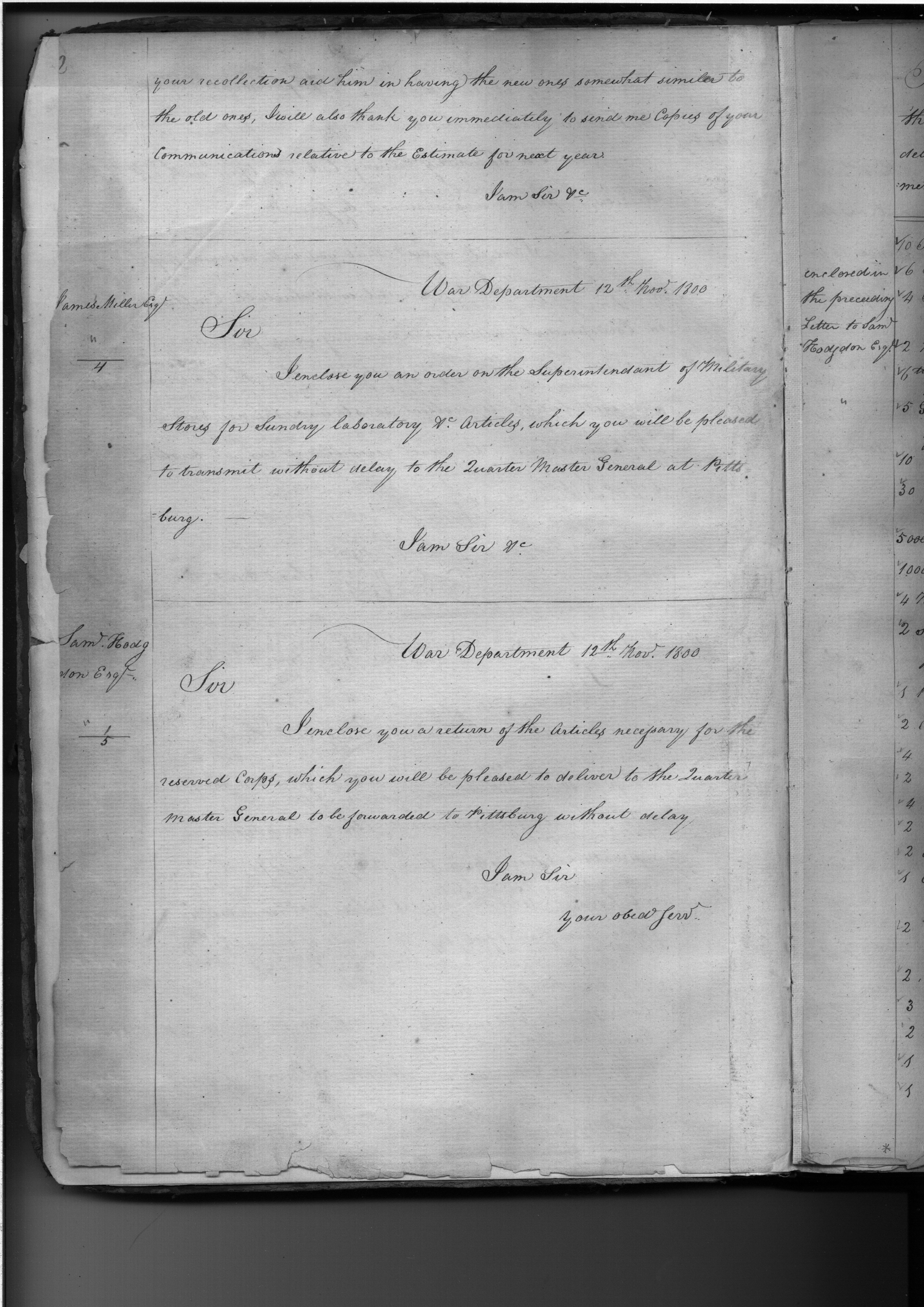 - In source: Collection: Letters Sent by the Secretary of War Relating to Procurement of Supplies (Order Books), Nov 12, 1800-Dec 31, 1889. (RG107) (M127)