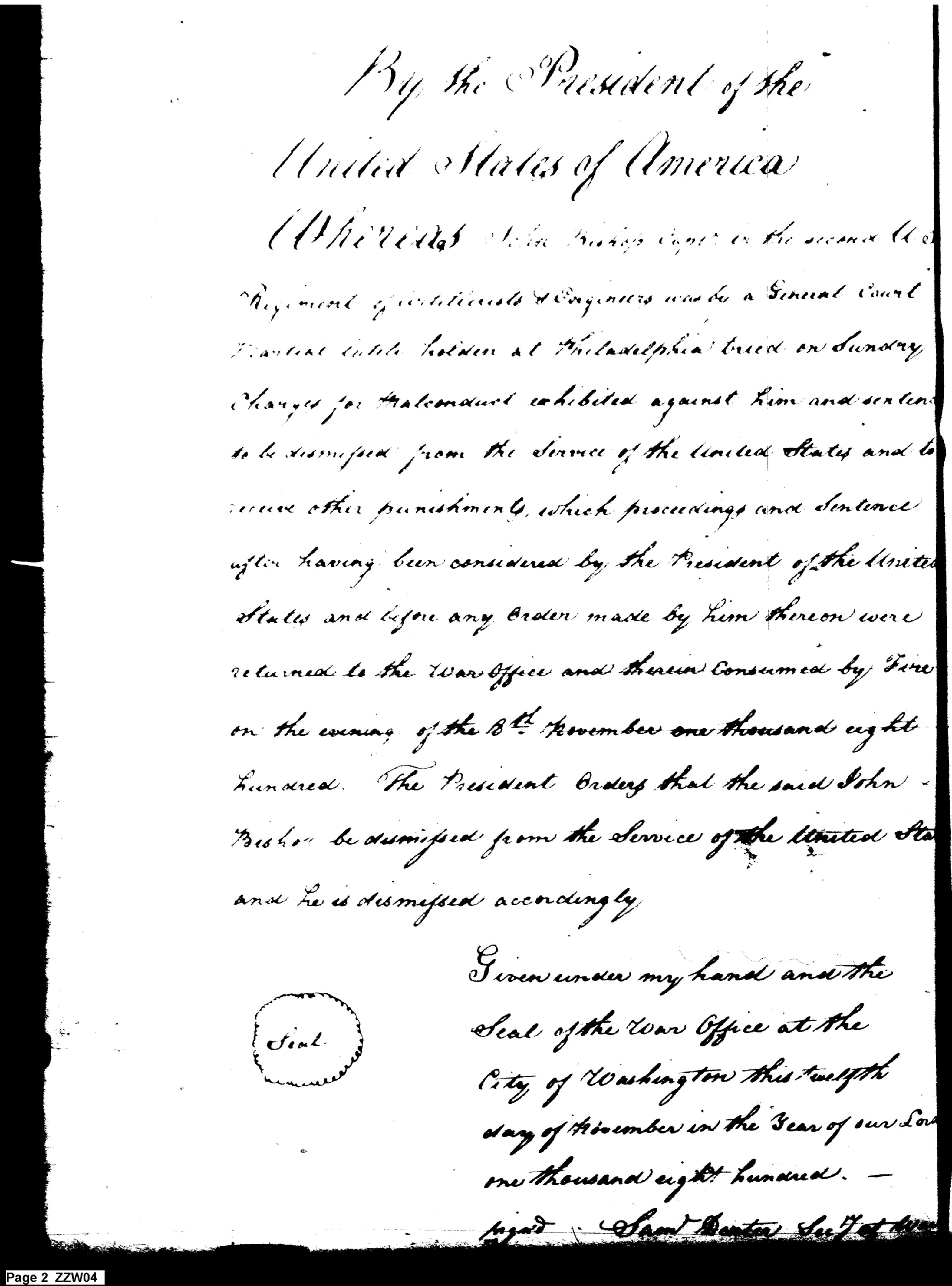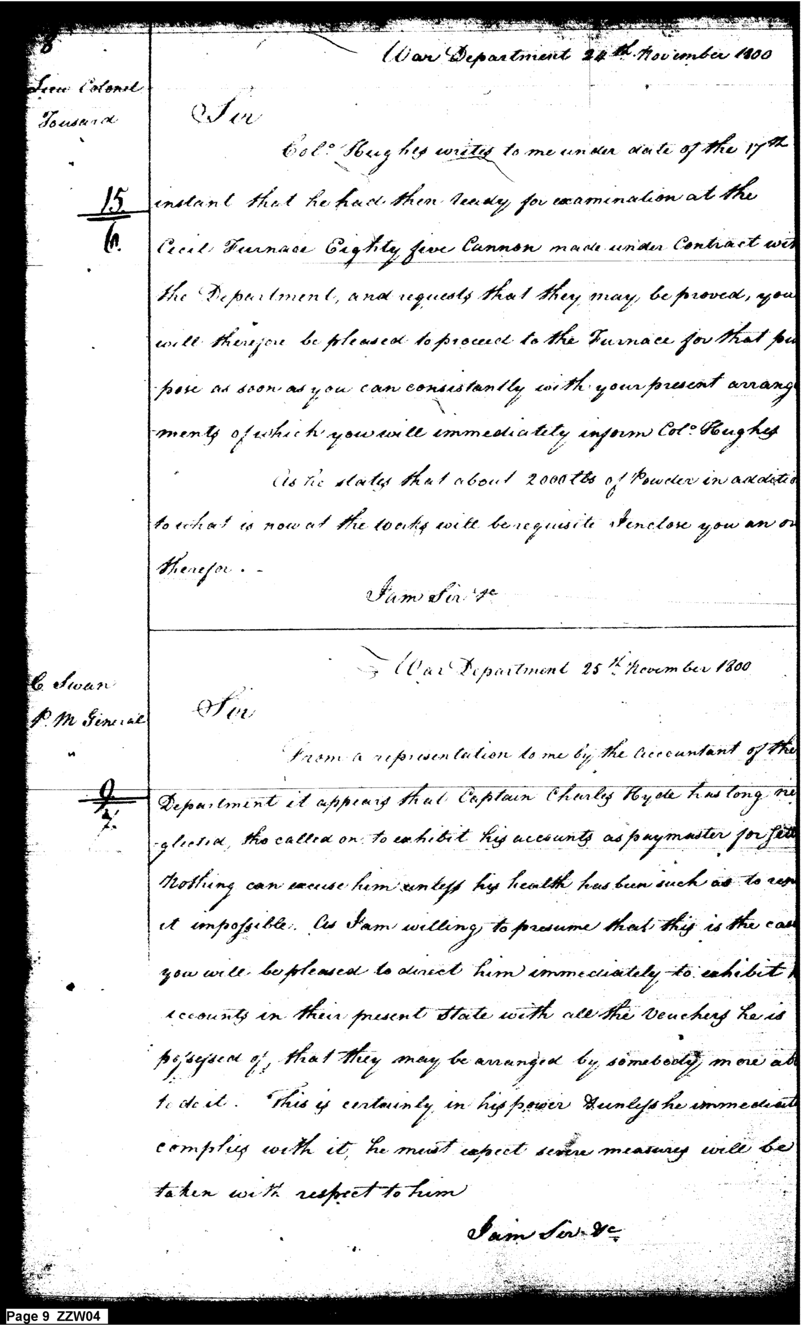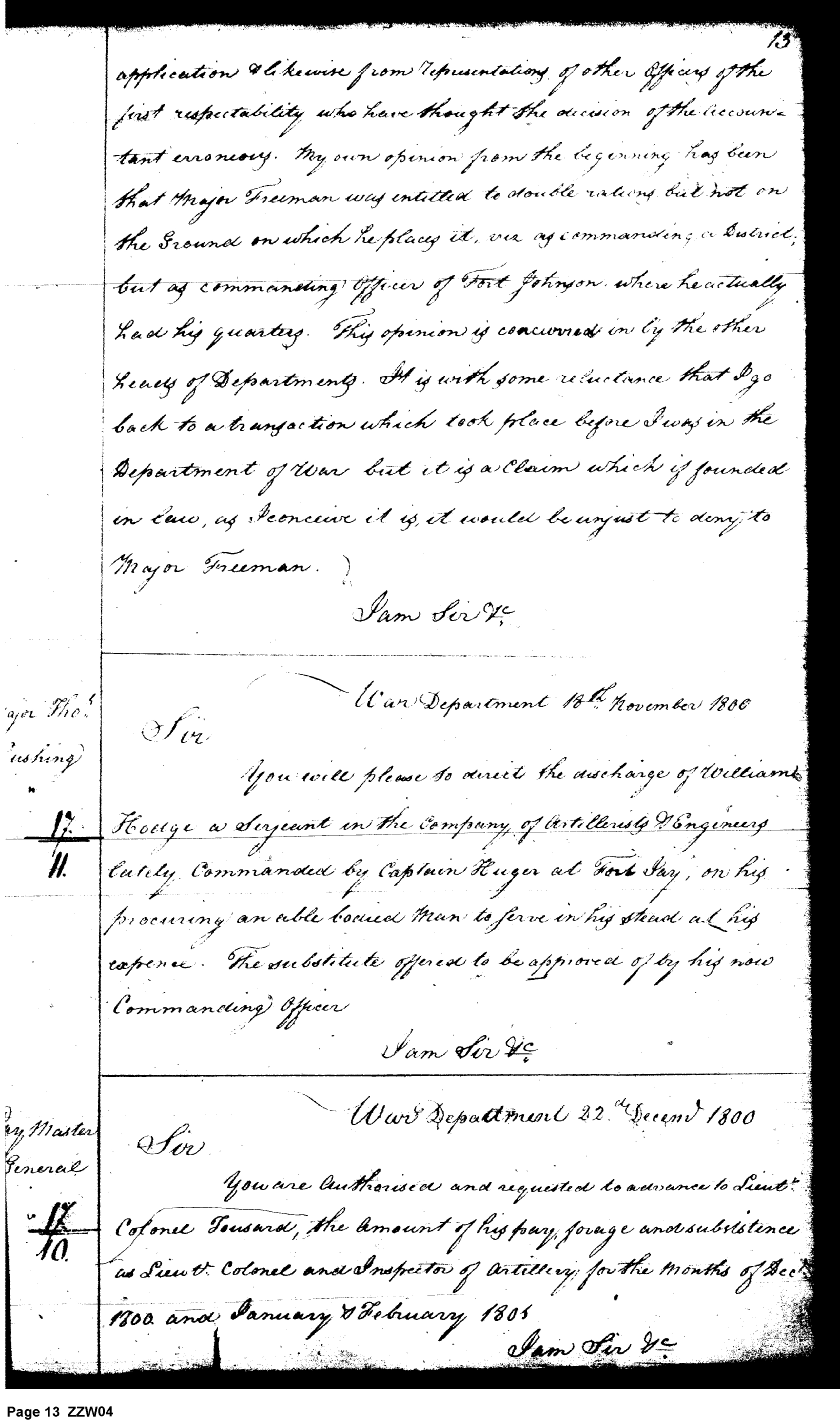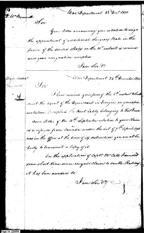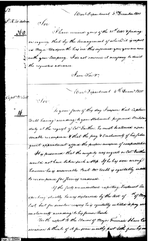 - In source: Collection: Letters Sent by the Secretary of War Relating to Military Affairs (Military Books), Nov 12, 1800-Dec 31, 1889. (RG107) (M6)