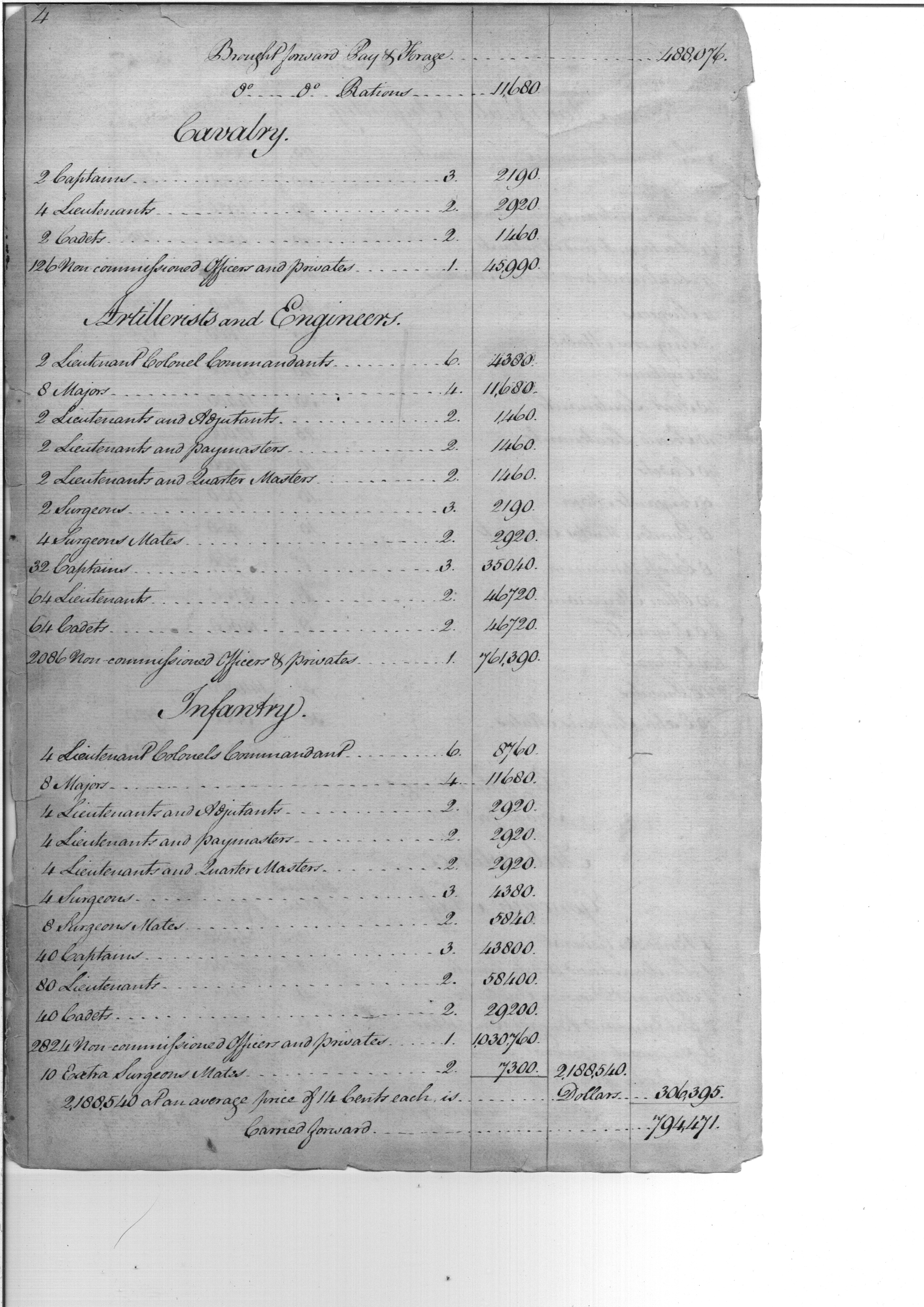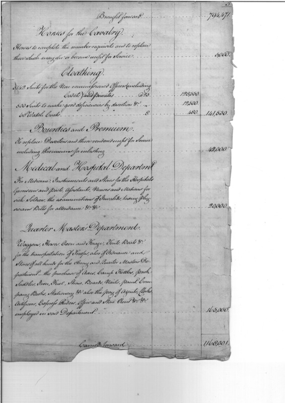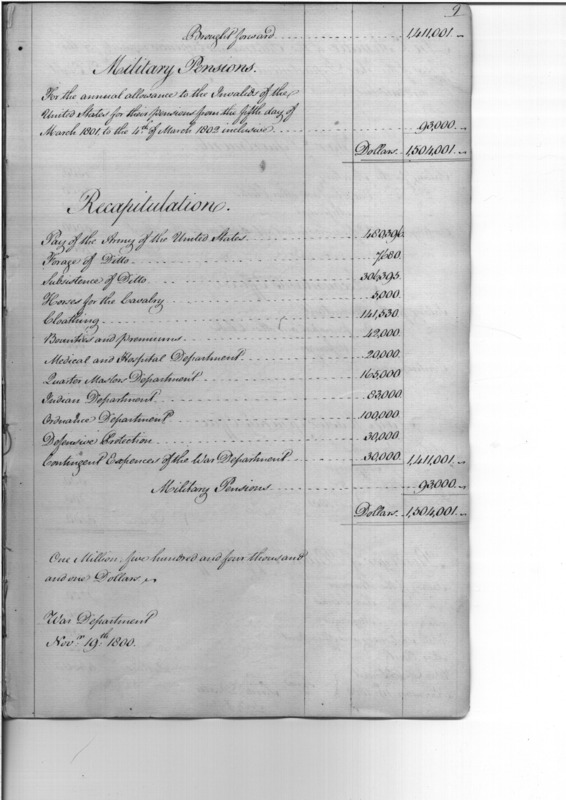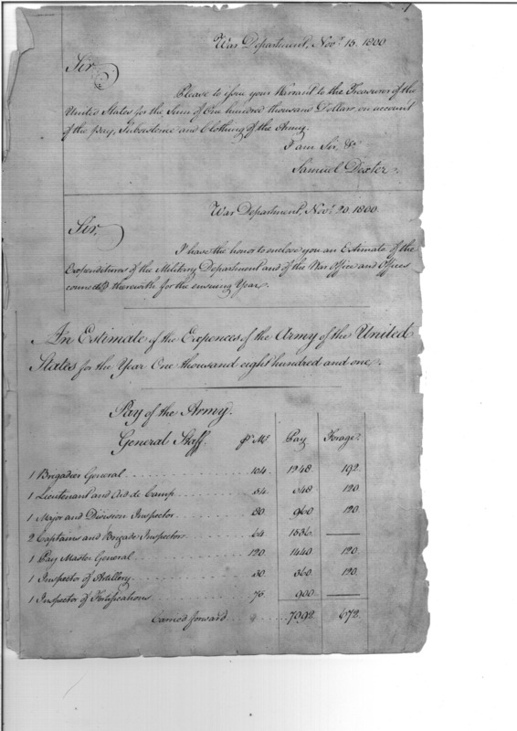 - Document: Estimate of Expenses for the US Army, 1801