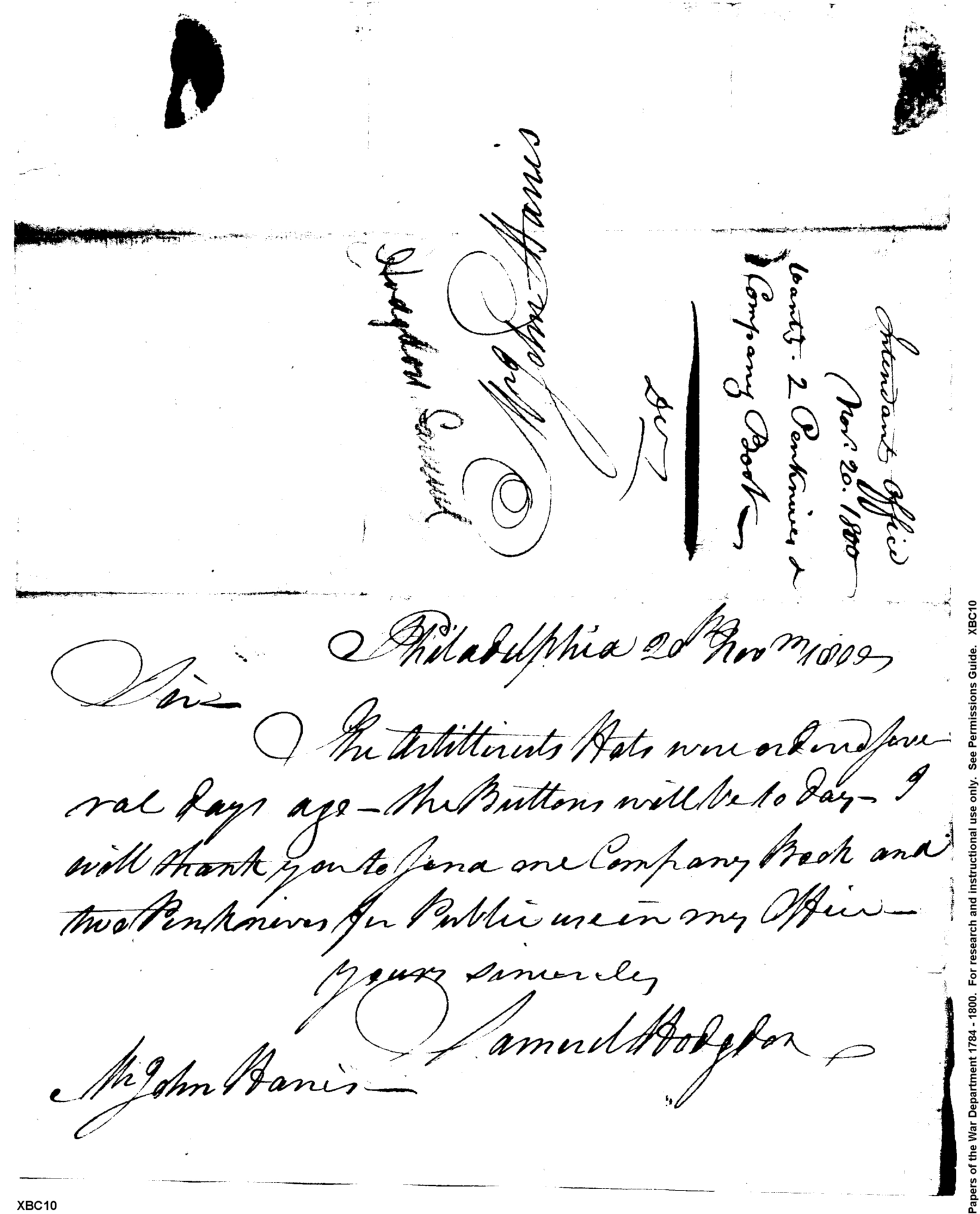 Document ViewerRegarding Hat & Button Orders; Items Requested for War Department Intendant's Office