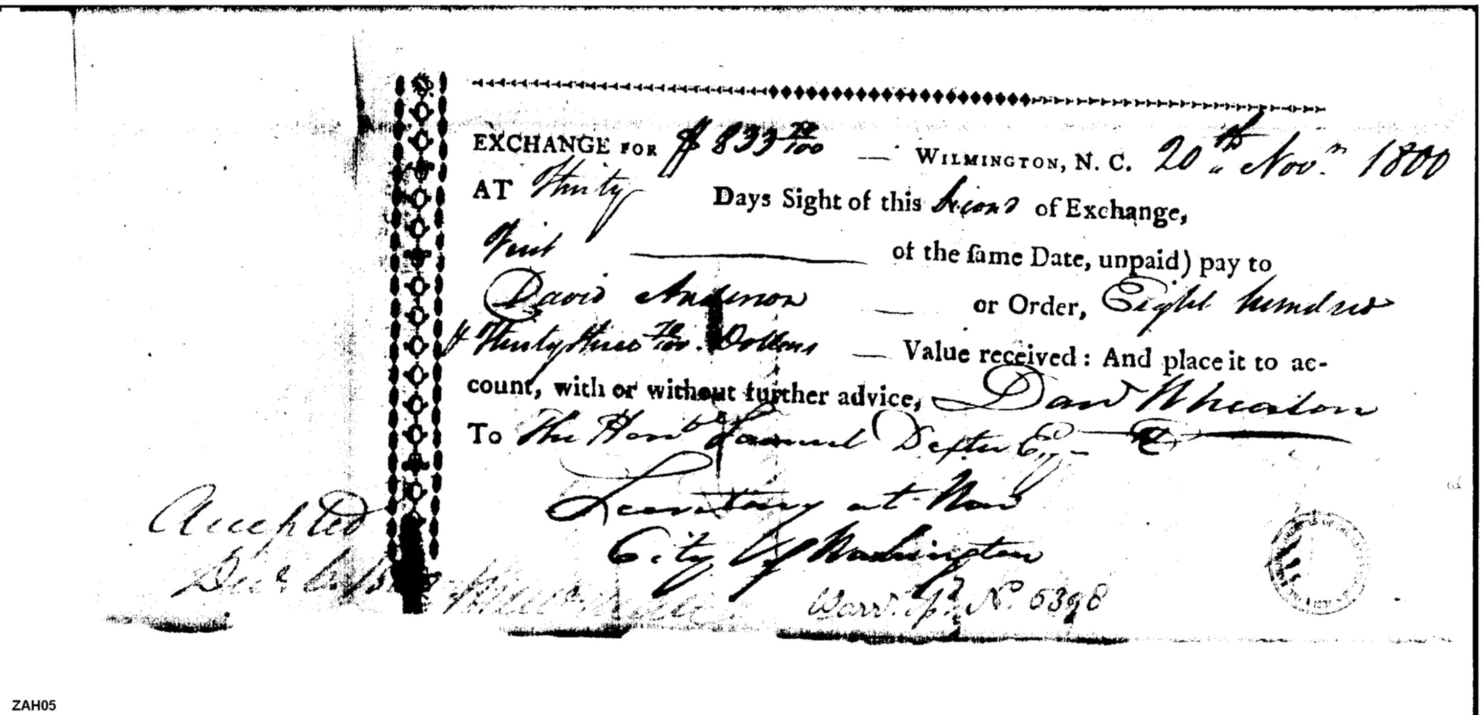 - Document: Exchange, David Anderson, Wilmington, North Carolina