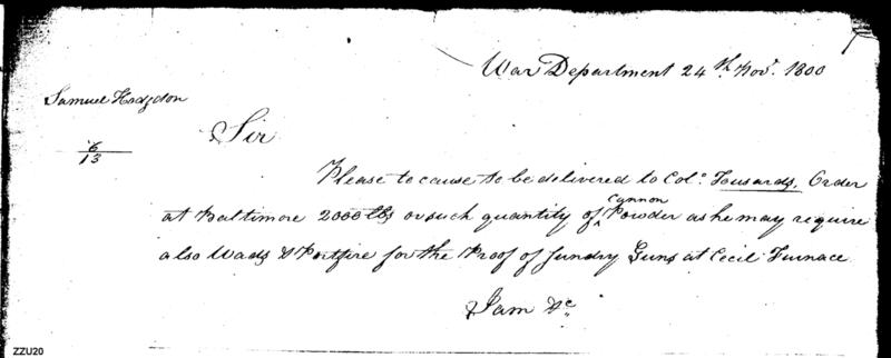 - In source: Collection: Letters Sent by the Secretary of War Relating to Procurement of Supplies (Order Books), Nov 12, 1800-Dec 31, 1889. (RG107) (M127)