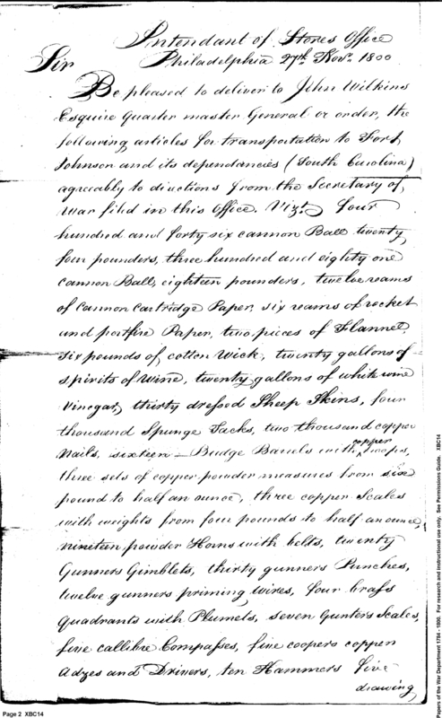 - Document: Request for Issue of Assorted Military Stores, Tools & Materials to Fort Johnson, SC