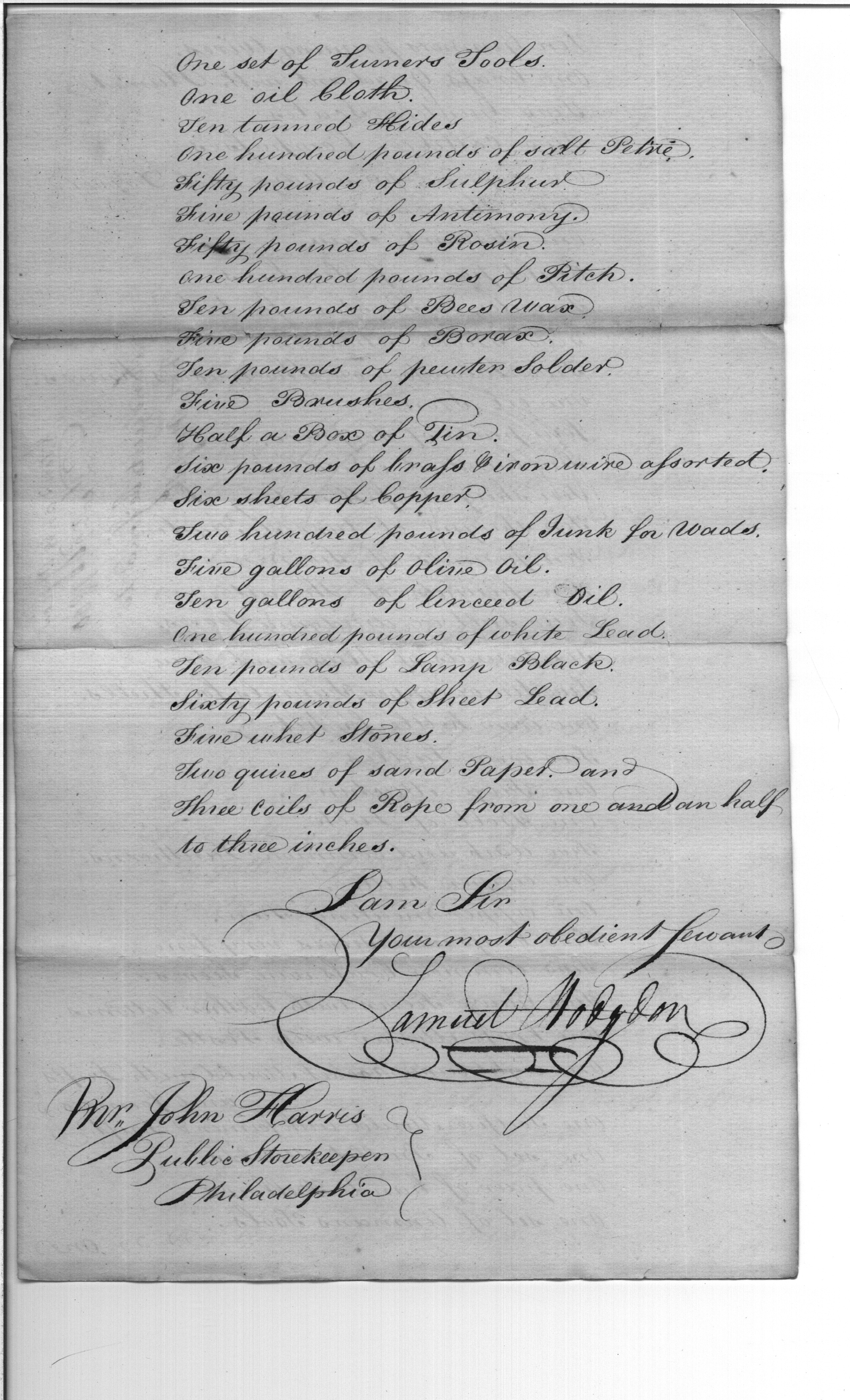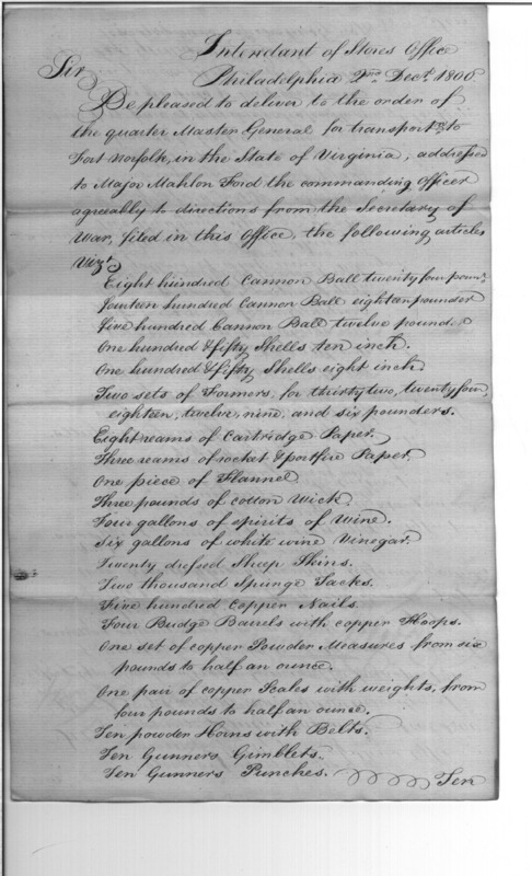 - Document: Request for Issue of Assorted Military Supplies & Tools to Fort Norfolk, Virginia