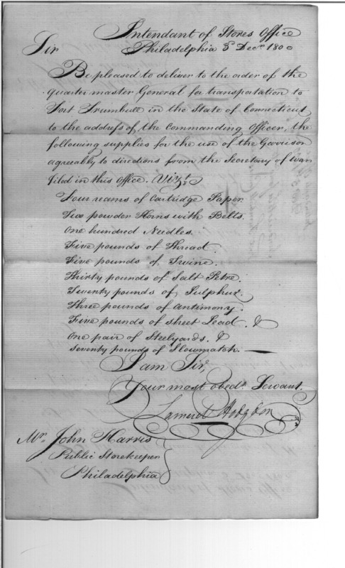 - Document: Request for Issue of Ammunition & Cartridge Supplies to Fort Trumbull