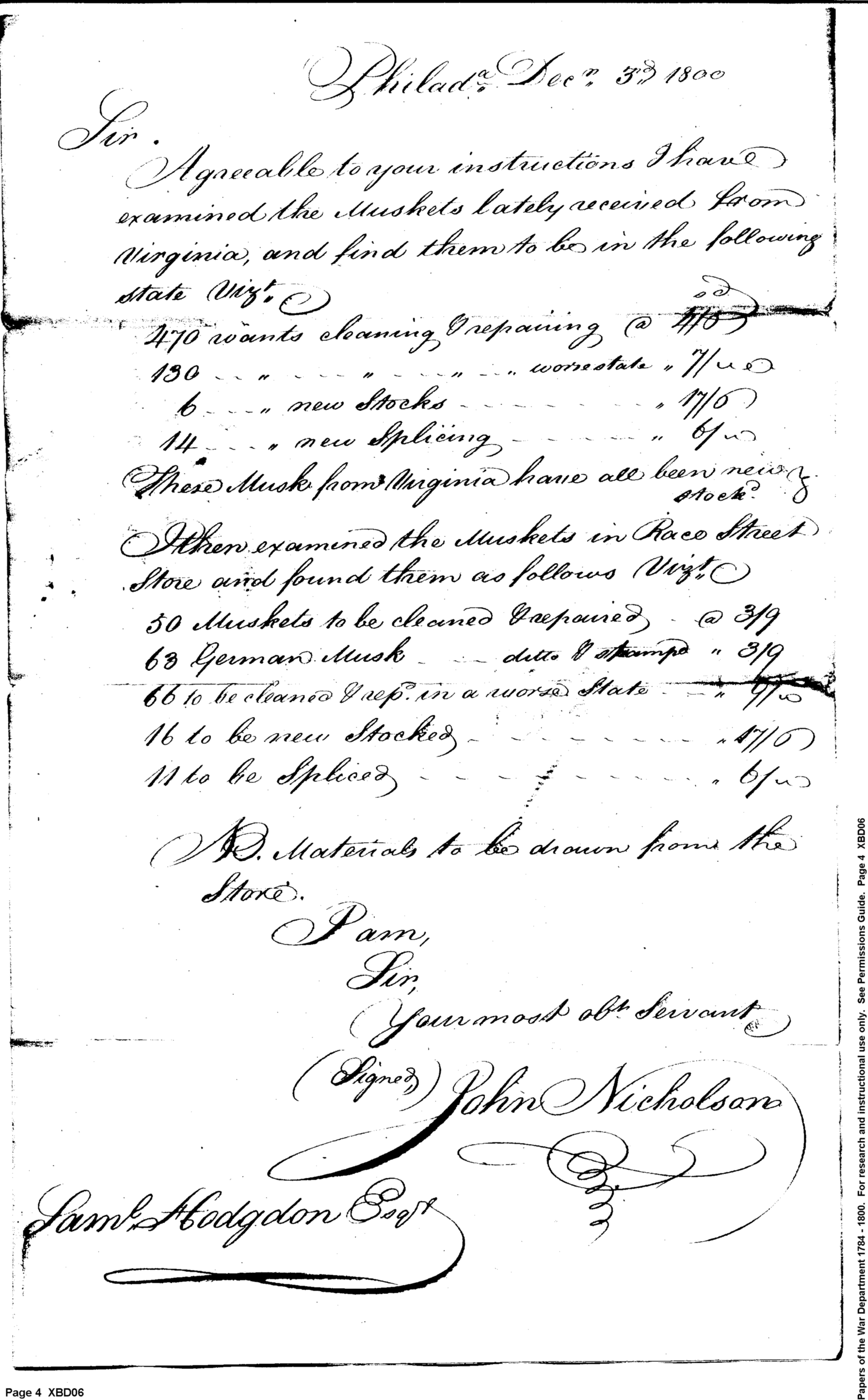 - Document: Report on Condition of Muskets in Military Stores