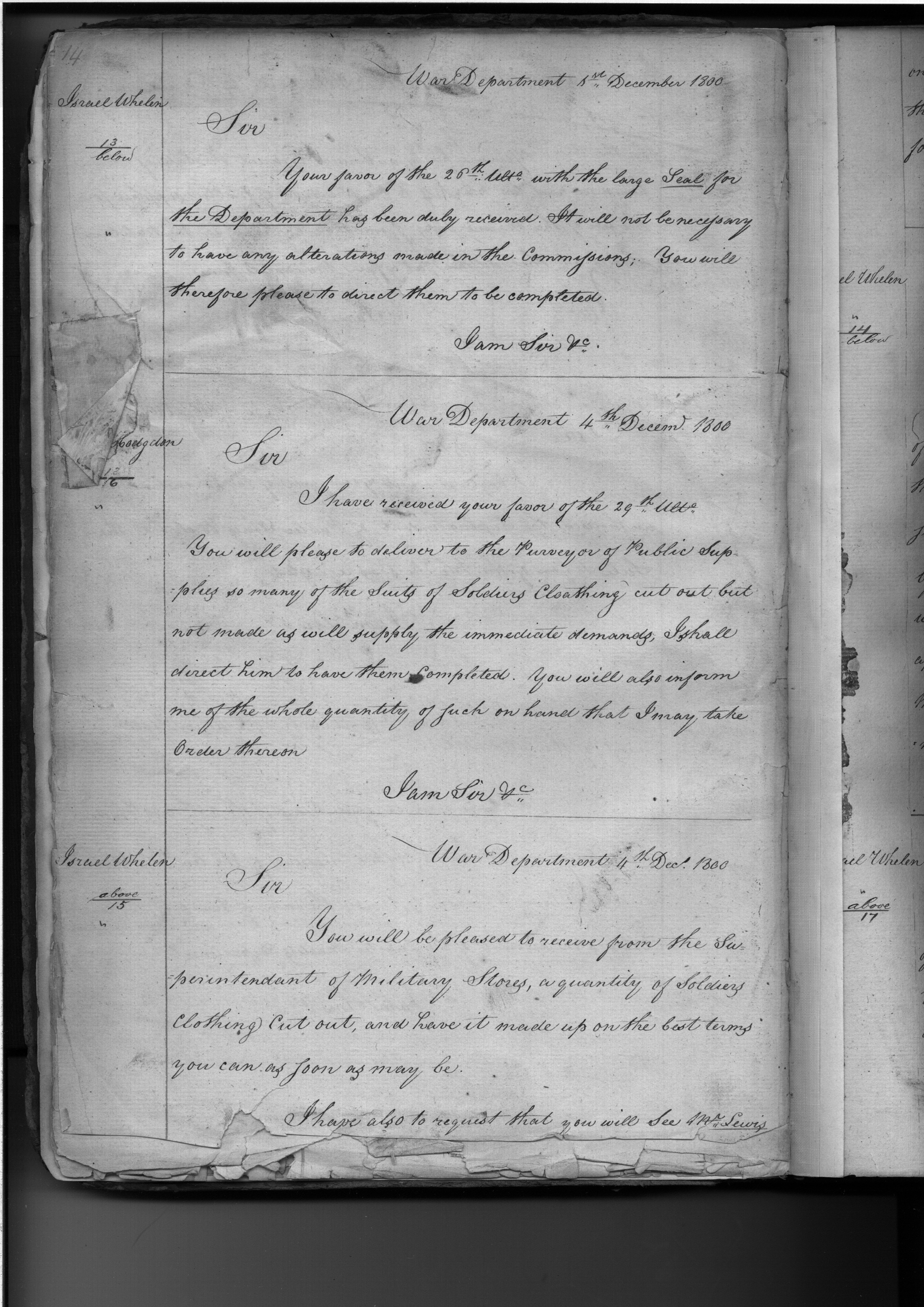 - In source: Collection: Letters Sent by the Secretary of War Relating to Procurement of Supplies (Order Books), Nov 12, 1800-Dec 31, 1889. (RG107) (M127)