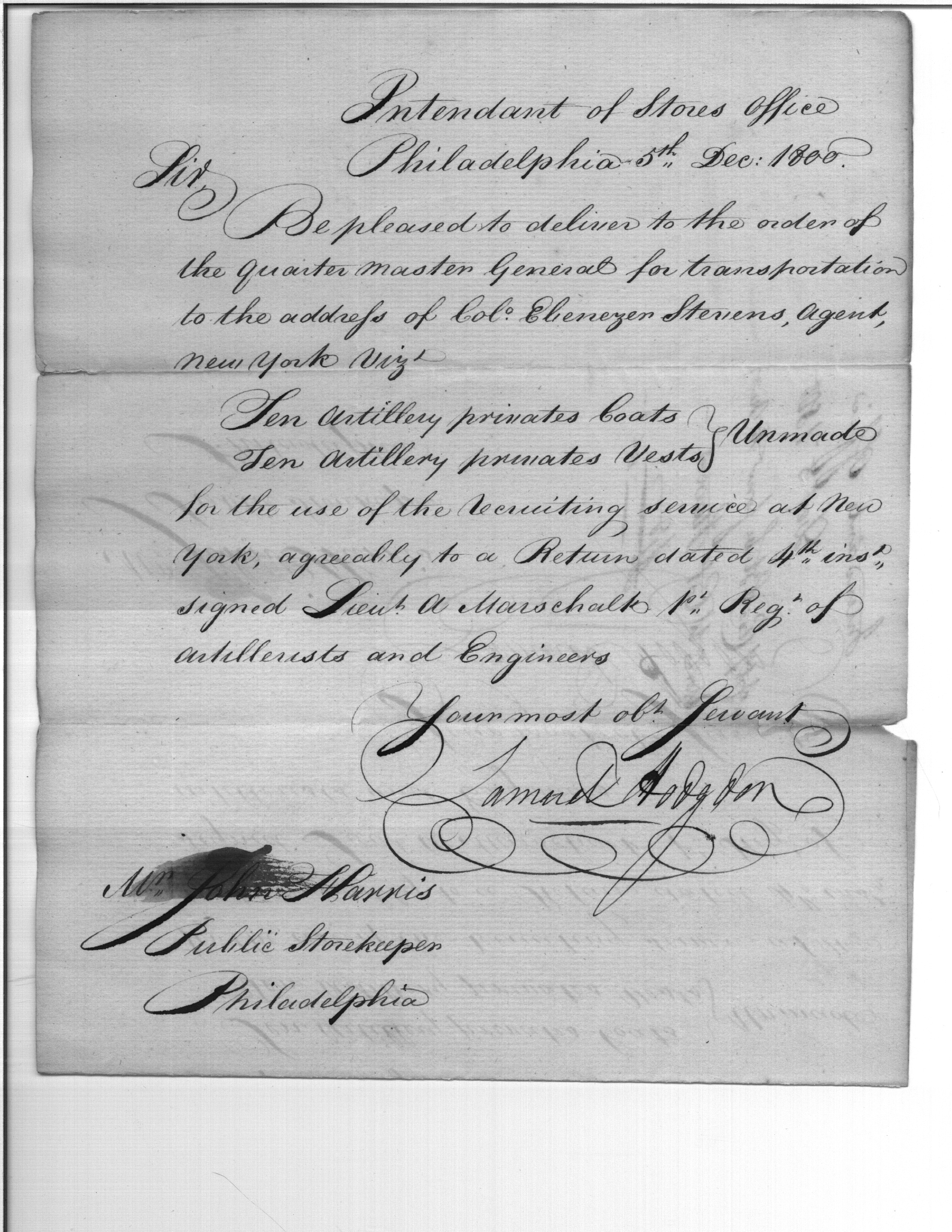 - Document: Request for Issue of Artillerists' Clothing to New York Recruiter