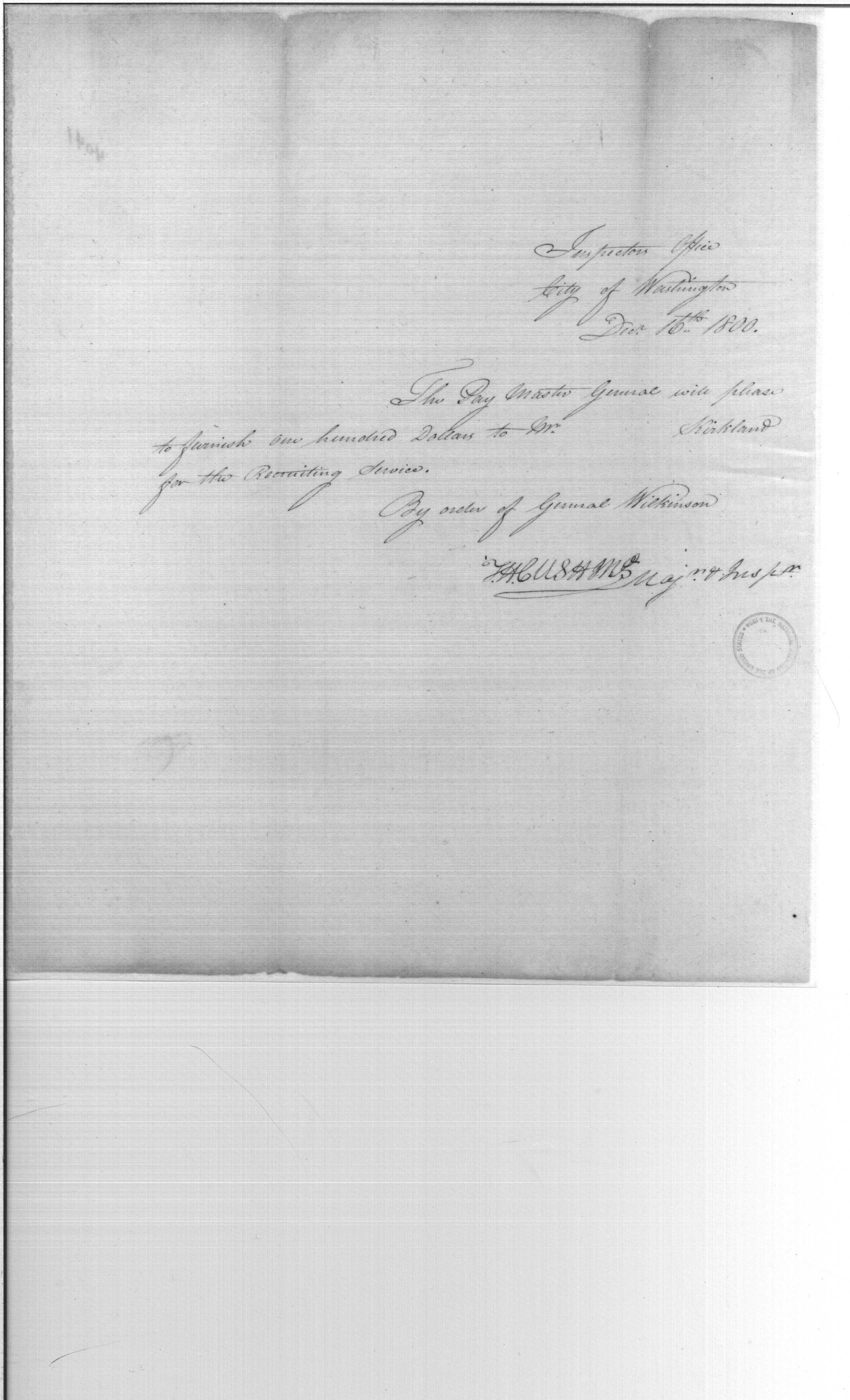 - Document: Monies for Recruiting Service by Order of General Wilkerson