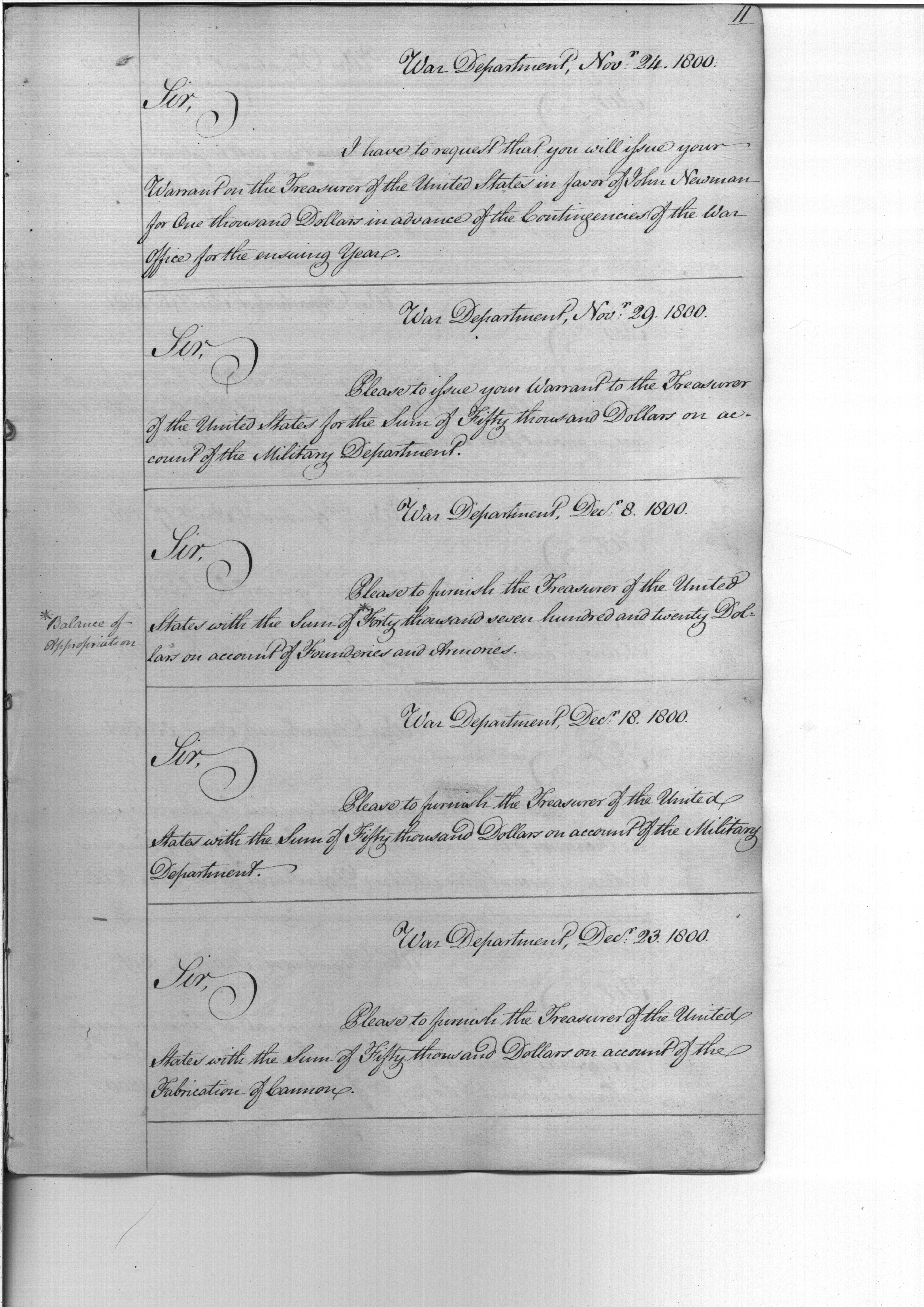 - In source: Collection: Letters Sent (Letterbooks) by the Secretary of War to the Secretary of the Treasury, 1800-1867. (RG203)