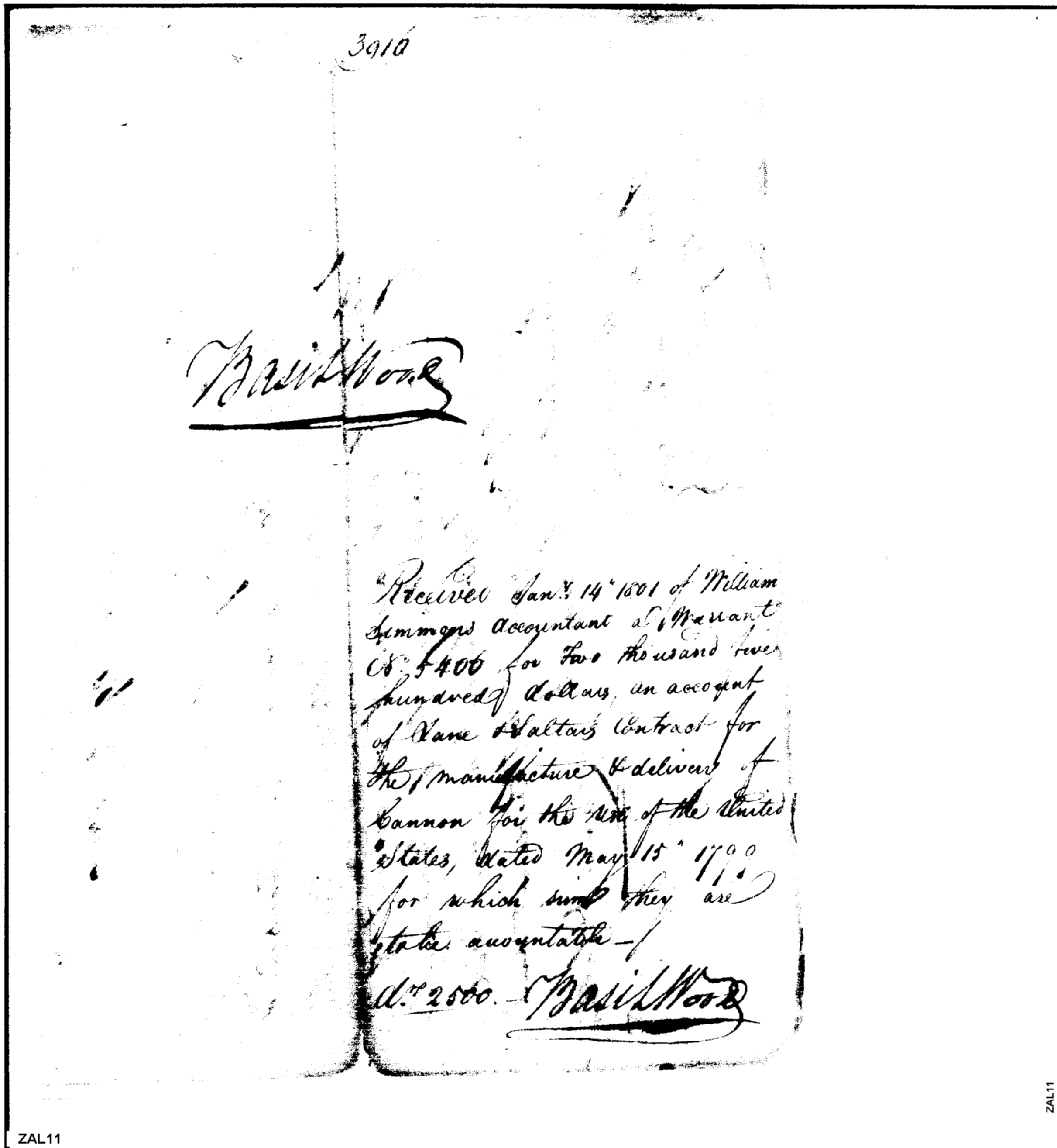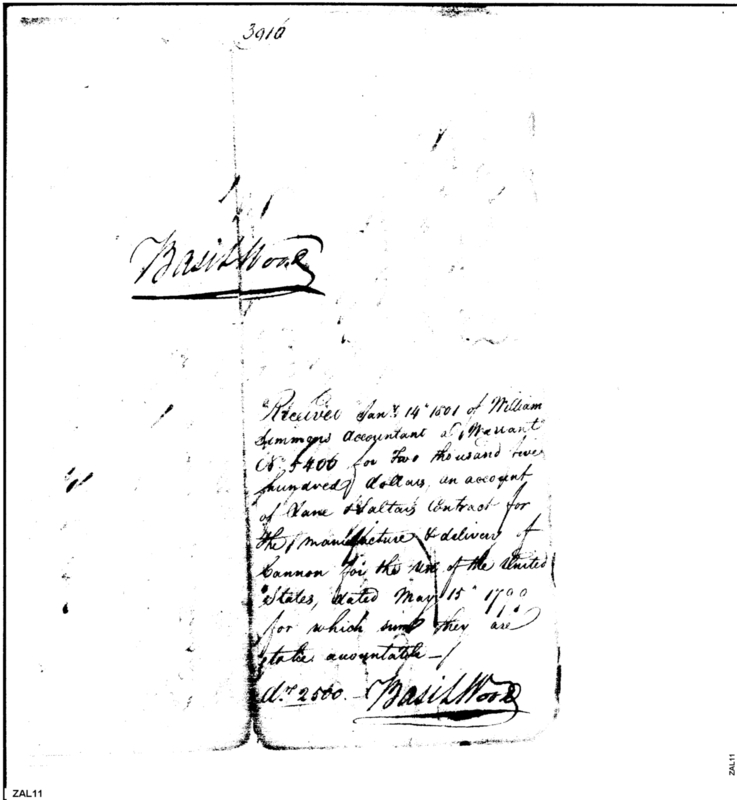- Document: Receipt of William Simmons to Basil Wood for Cannon