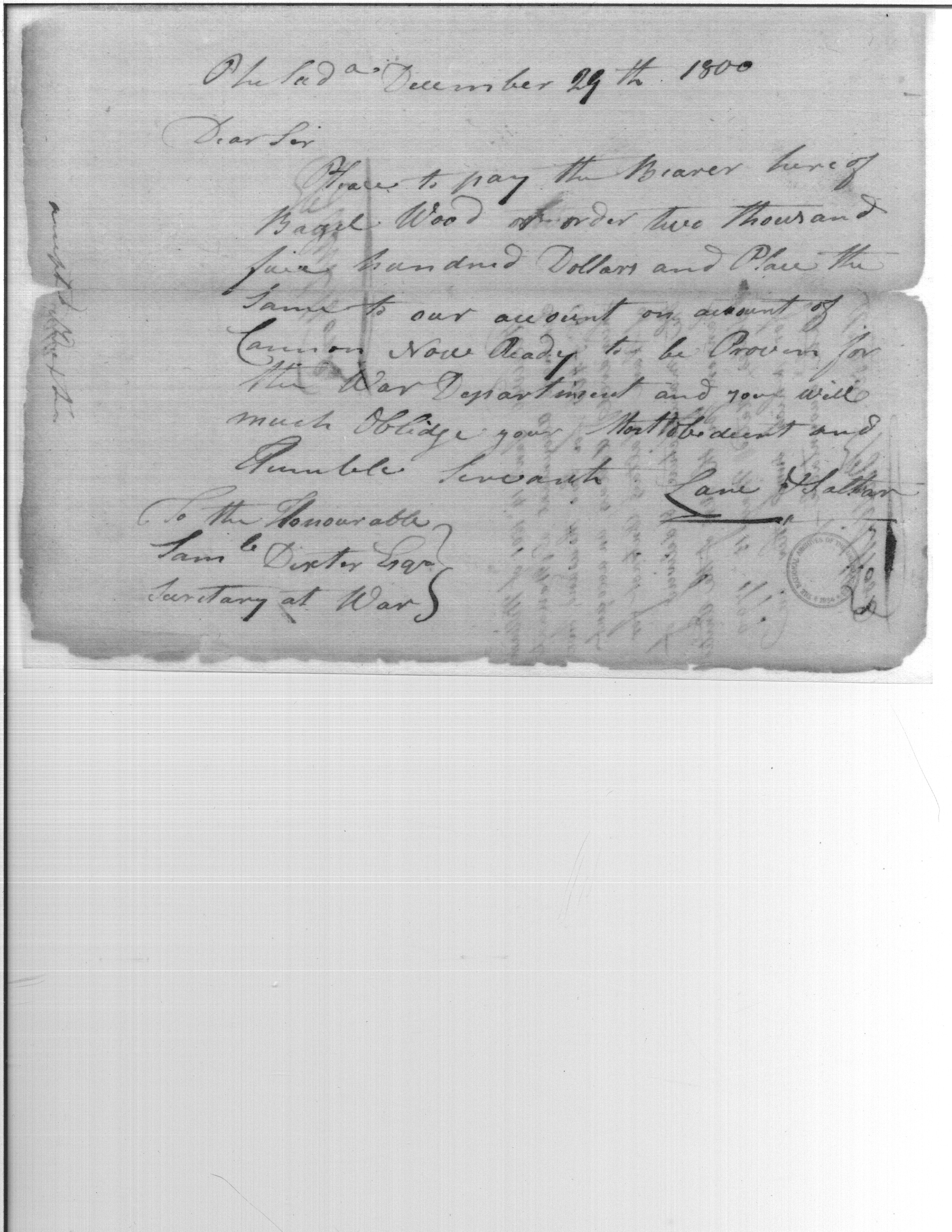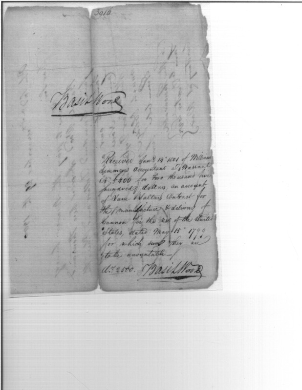 - Document: Receipt of William Simmons to Basil Wood for Cannon