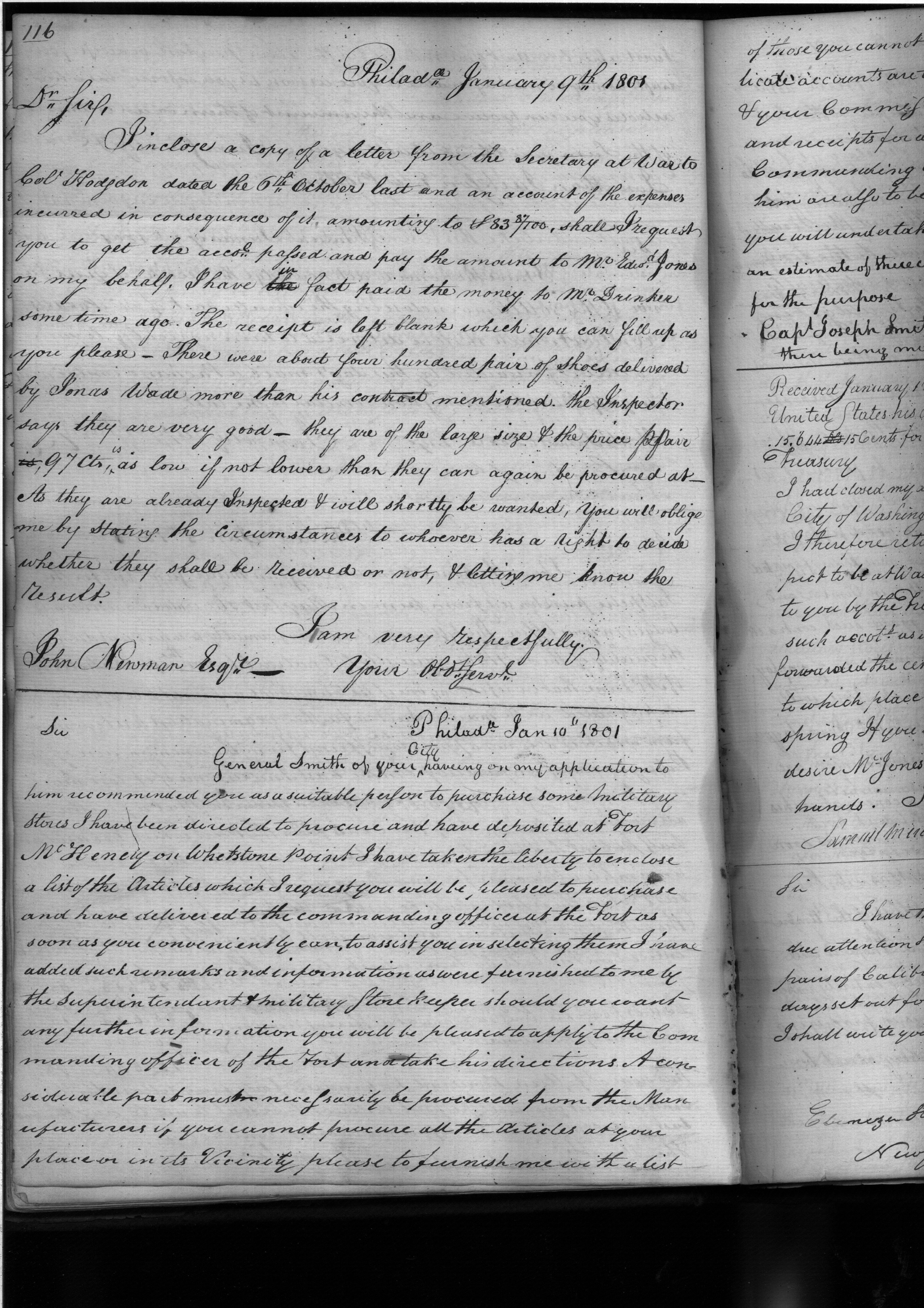 - In source: Collection: Letterbook of the Purveyor of Public Supplies, May2, 1800-Jul 24, 1802. 1 vol. (RG45)