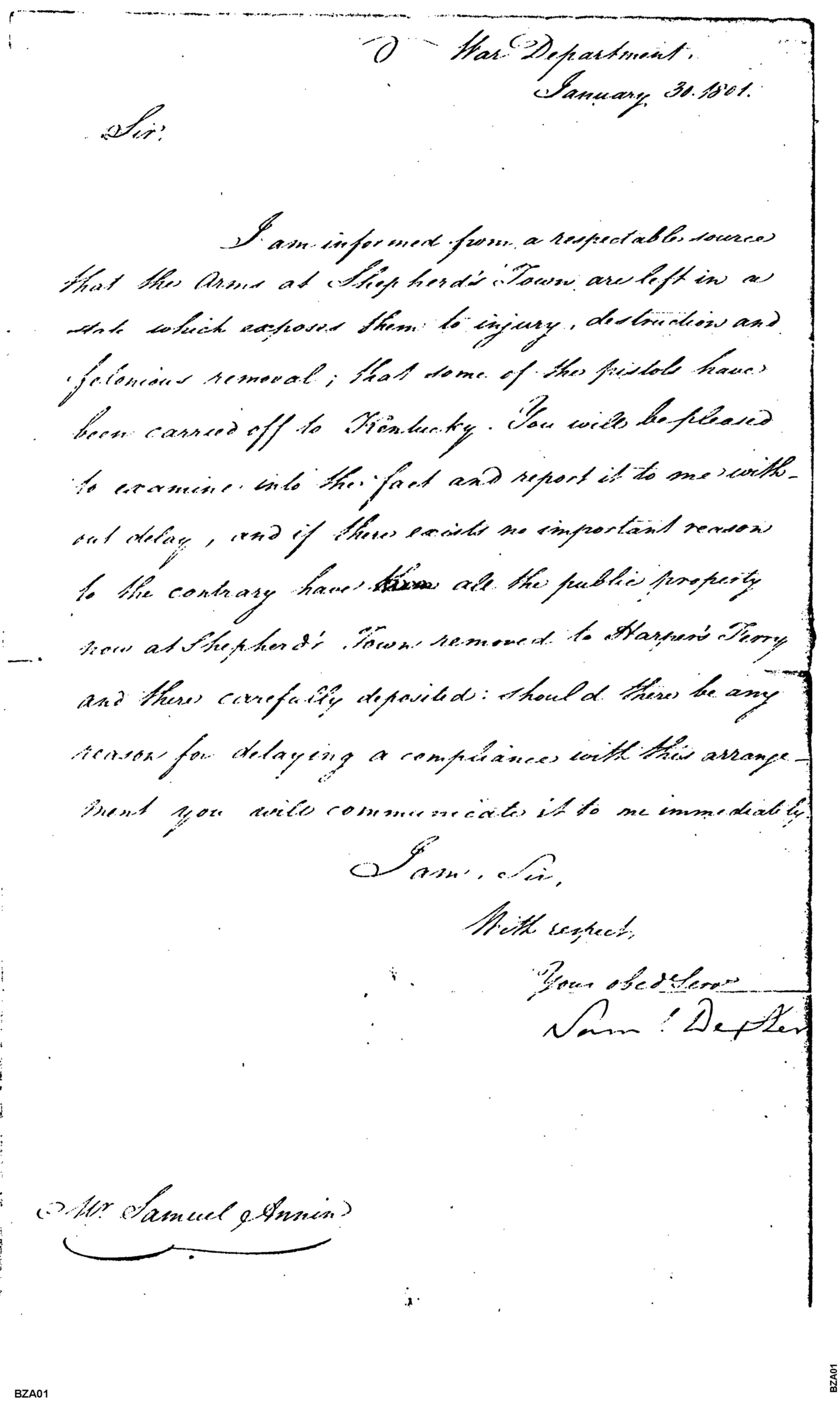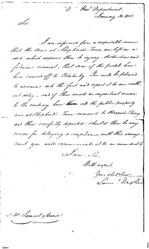 - Document: Removal of Public Stores to Harpers Ferry