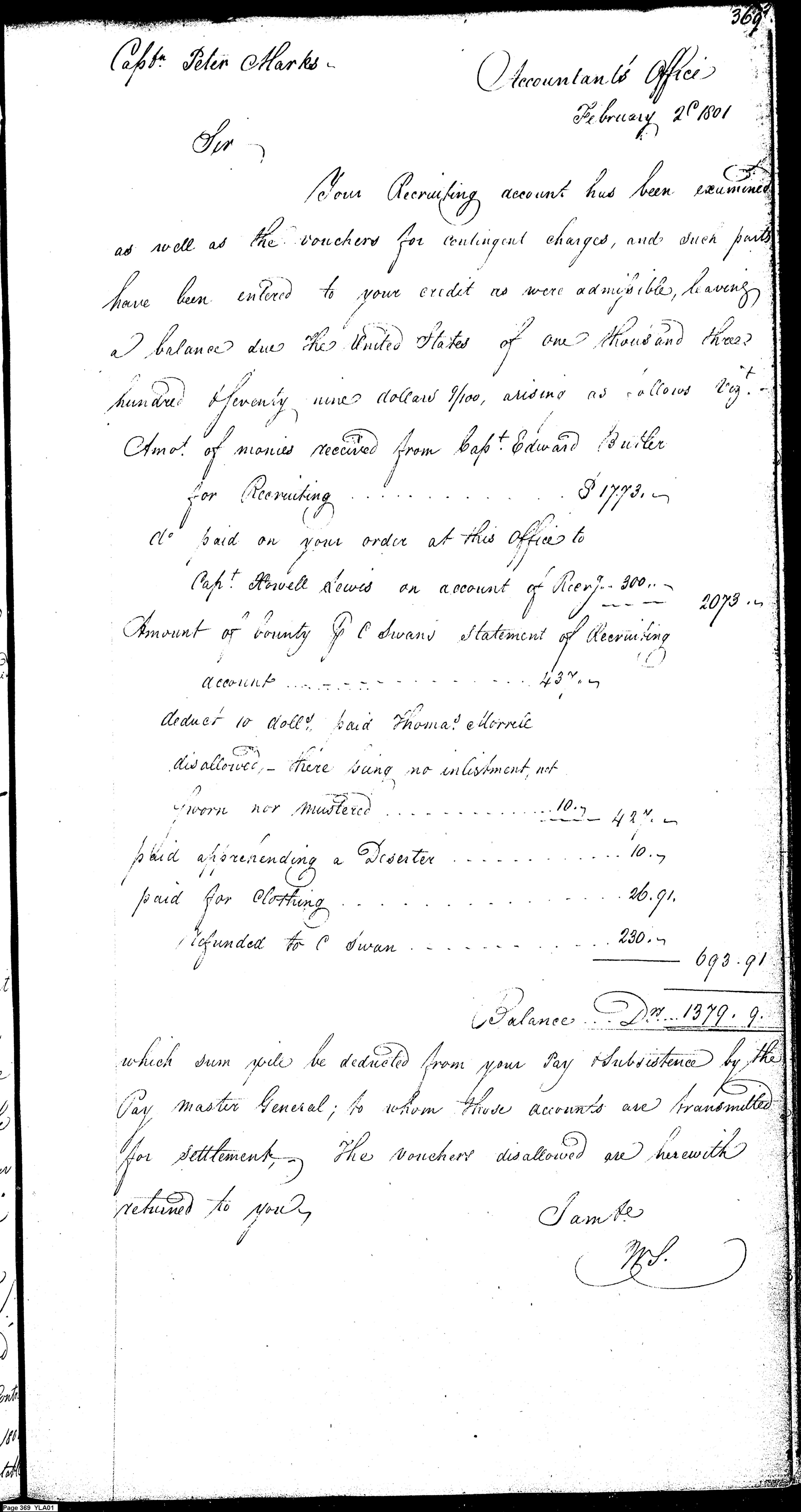 Document ViewerSimmons Informing Marks of $1379.90 due to the U.S. for Recruiting