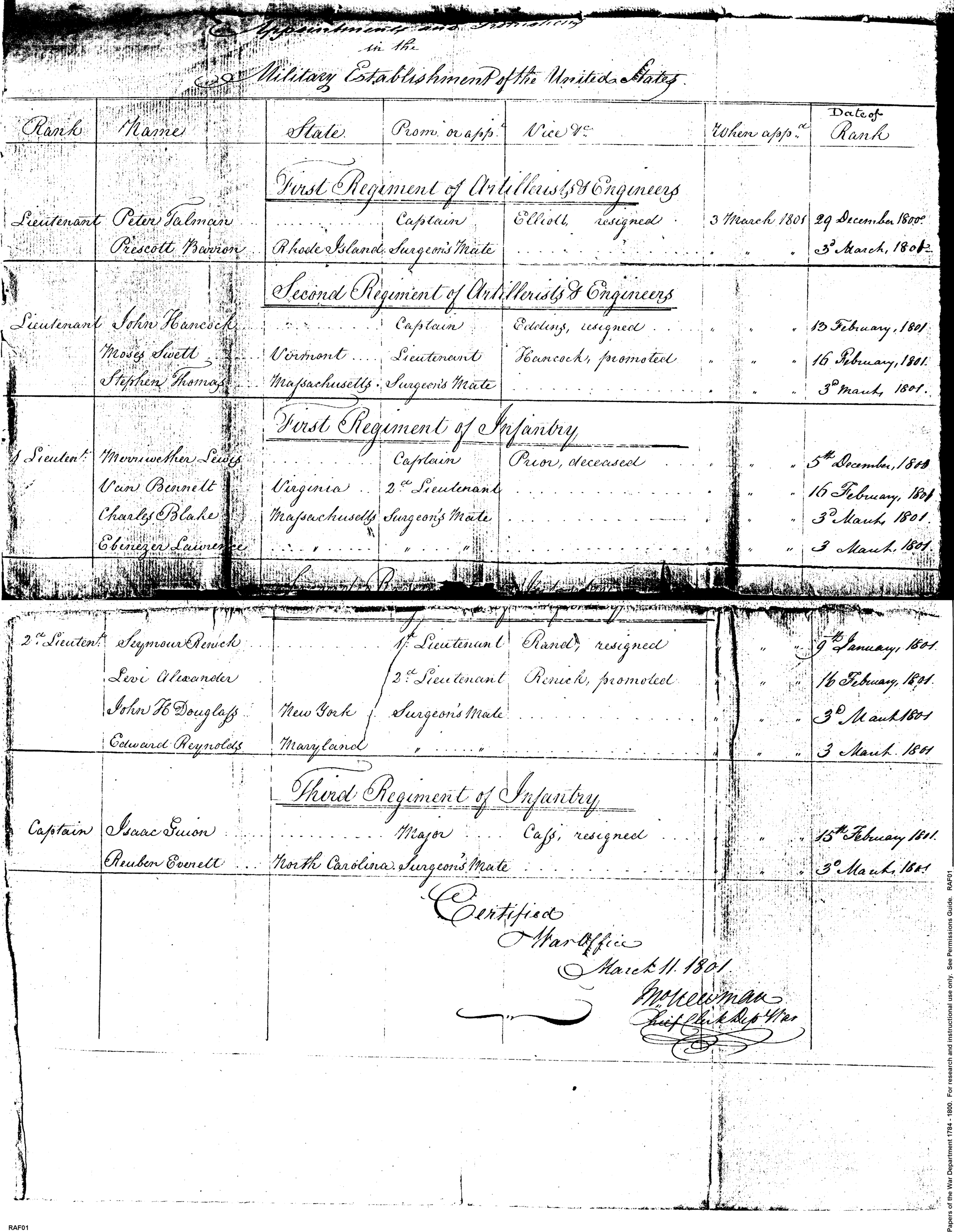 - Document: Appointments and Stations in the Military Establishment of the United States