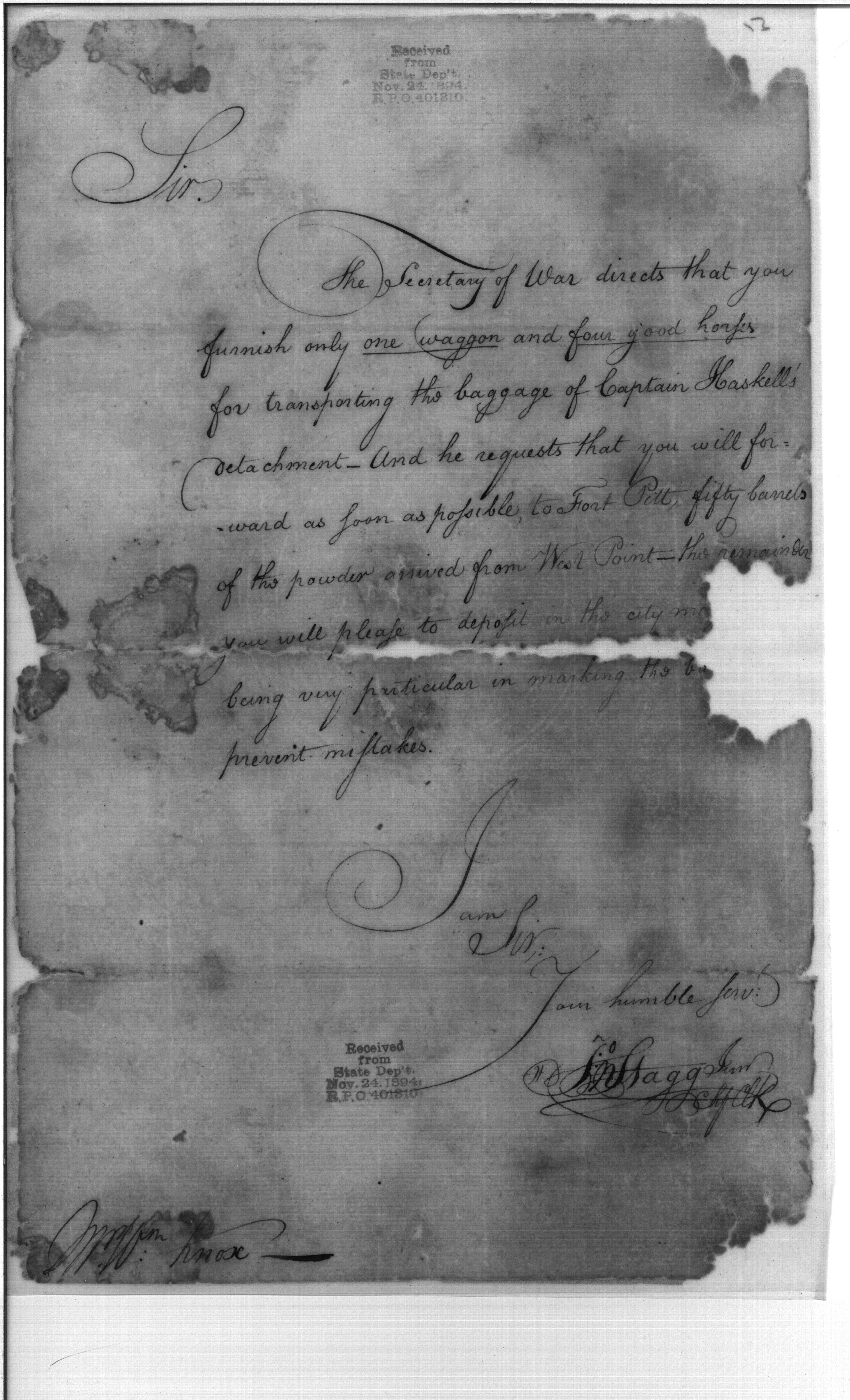 - In source: Collection: First Congress: President's Message Transmitting Reports from the Secretary of War to the Senate [1A-E4] (RG46)
