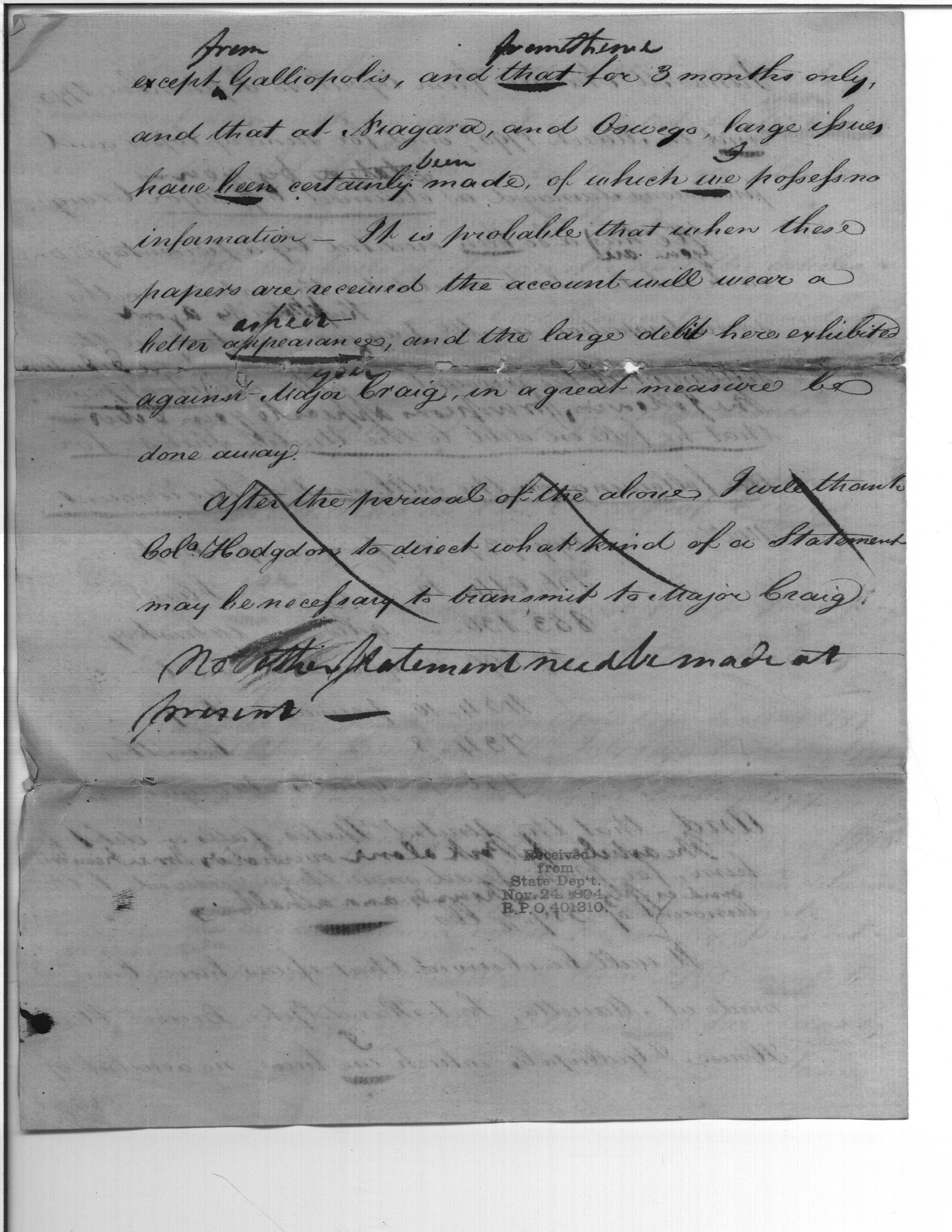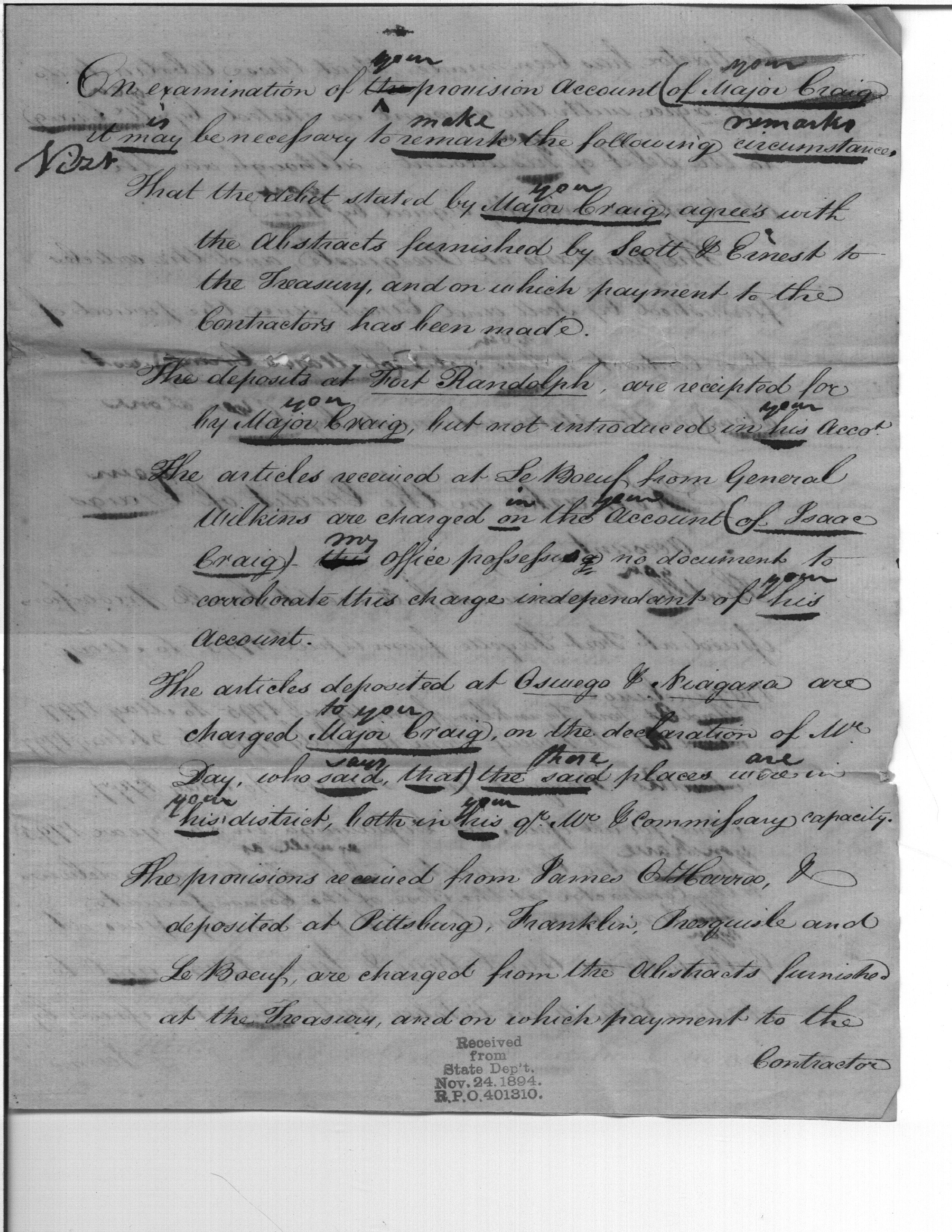 - Document: Draft Statement of the Account and Credit of Isaac Craig