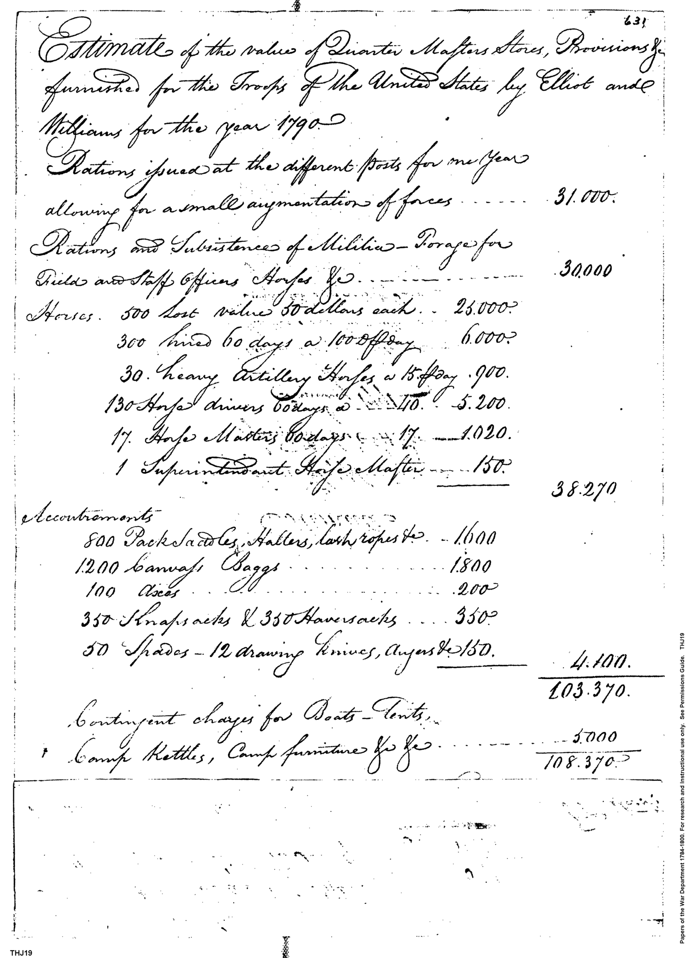 - Document: Estimate of Supplies Furnished by Elliot & Williams