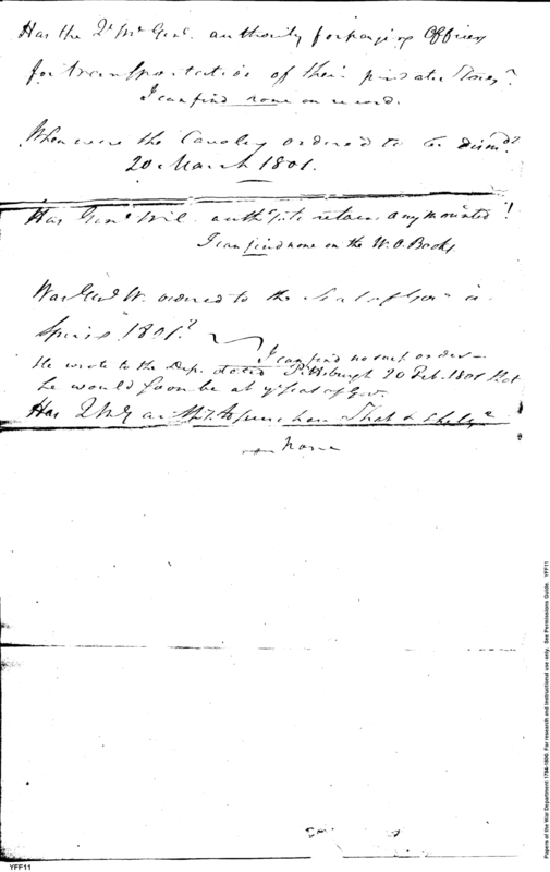 - Document: Interrogatives regarding the Quartermaster General