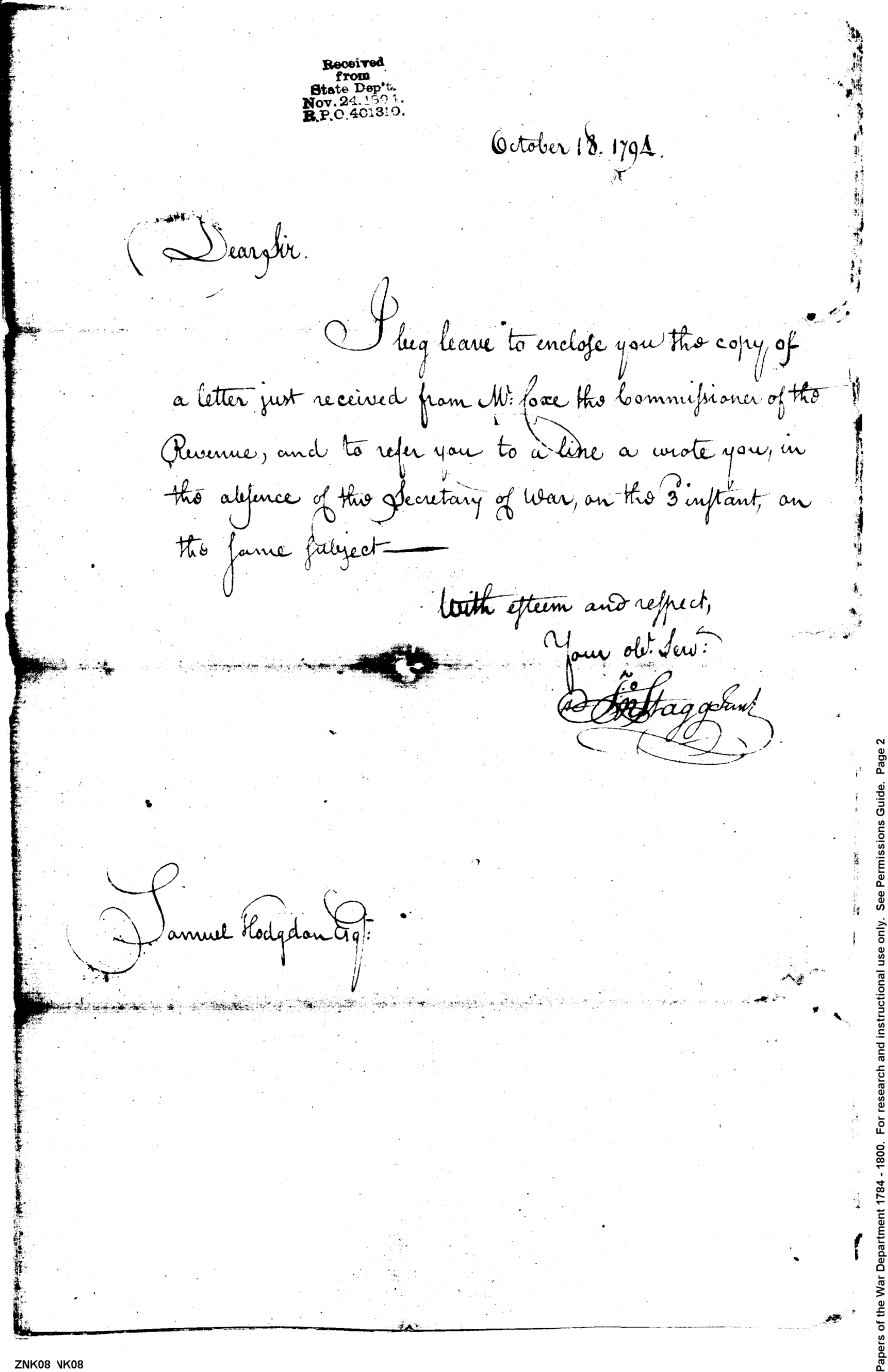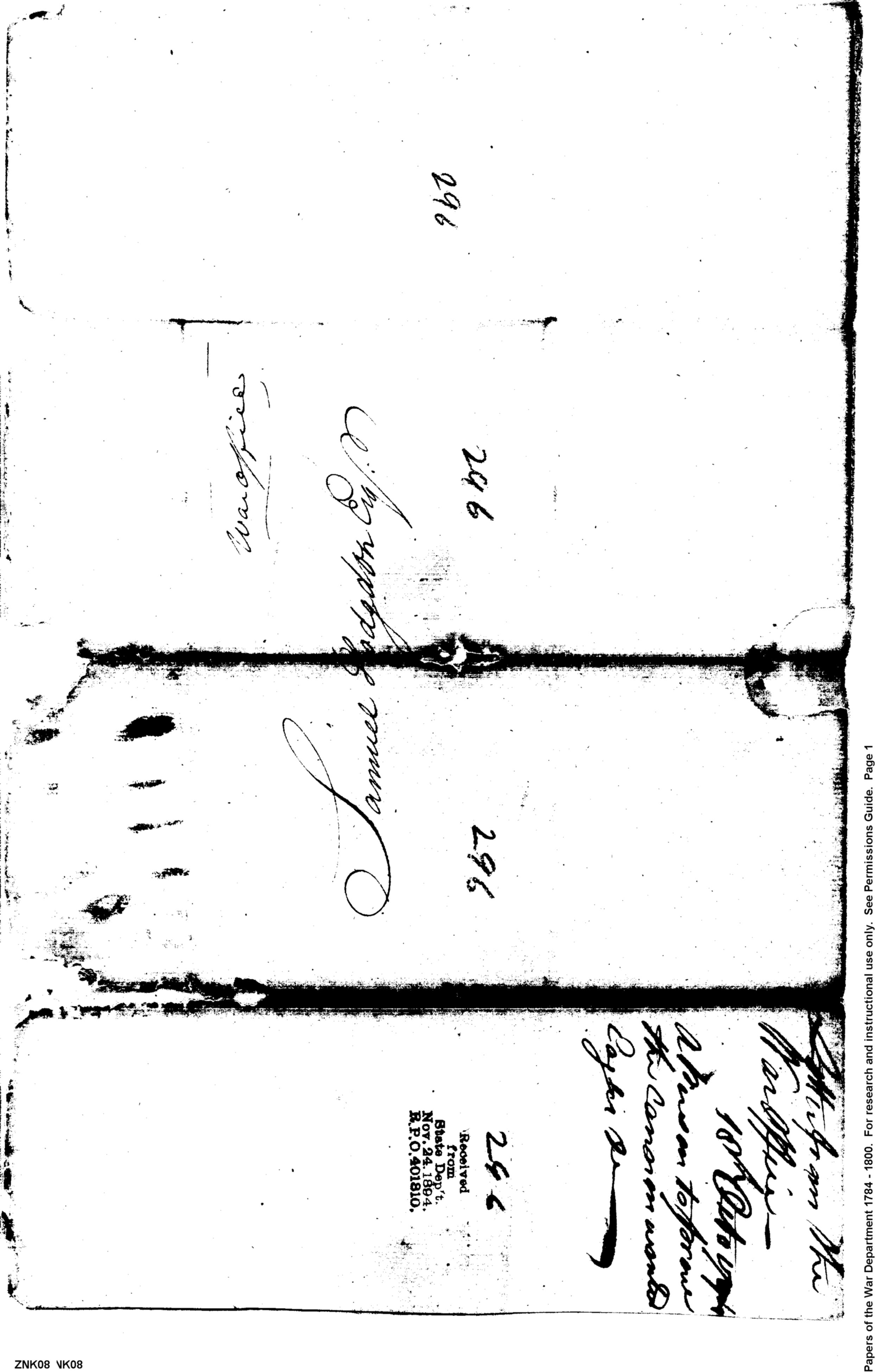 - In source: Collection: Post Revolutionary War Papers, 1784-1815. (RG94)