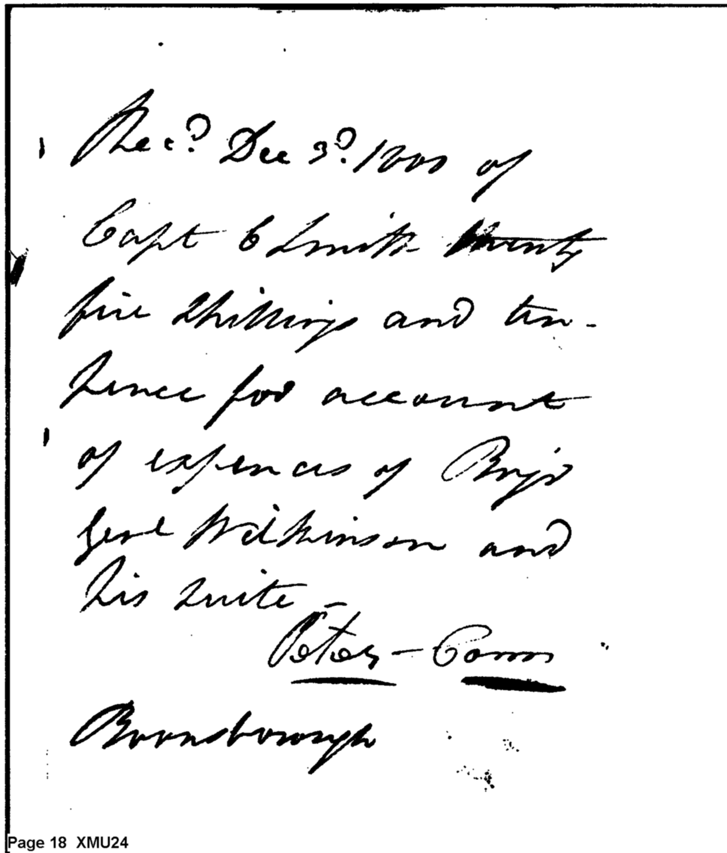Receipt of Peter Corn