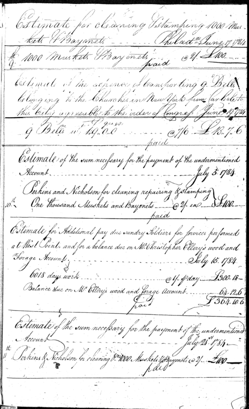 - Document: Estimate of payment for cleaning muskets and bayonets